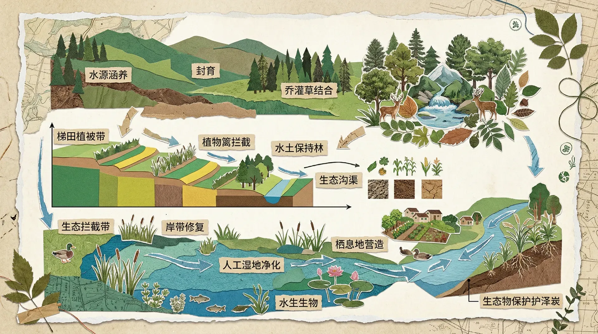 黄土高原地区水土流失严重,传统的单一治理措施效果有限。综合治理方案将整个小流域划分为不同的功能区,在坡度较陡的山顶种植防护林,涵养水源;在坡度适中的山坡上修建水平梯田,种植经济林果;在坡度较缓的山麓发展农业生产;在河谷地带建设水利设施,发展养殖业。这种“山顶戴帽子、山腰系带子、山脚穿靴子”的立体配置模式,既控制了水土流失,又促进了农民增收,实现了生态效益和经济效益的统一。