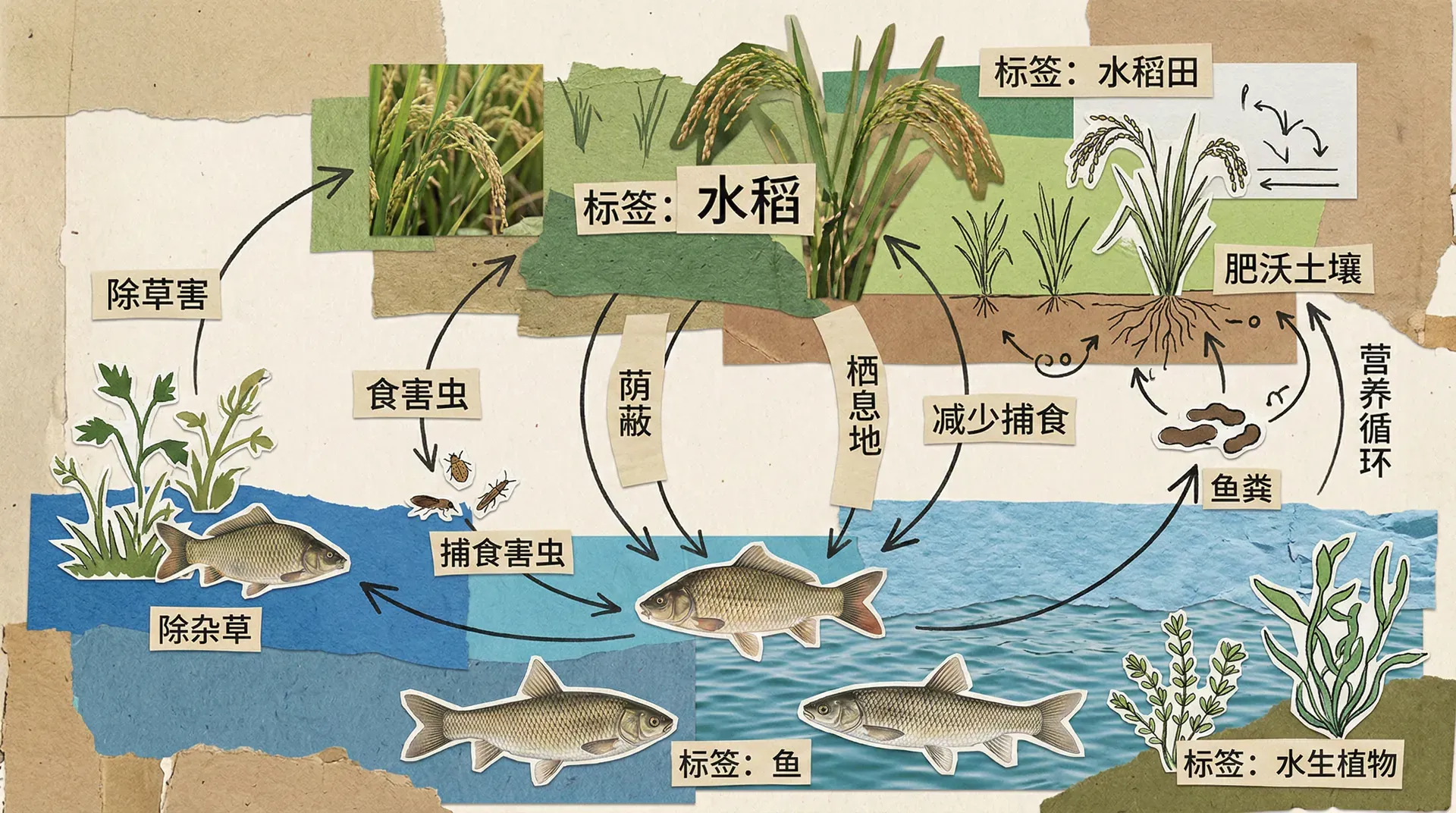 稻田养鱼在南方广泛流行,稻田与鱼类形成互利共生关系: