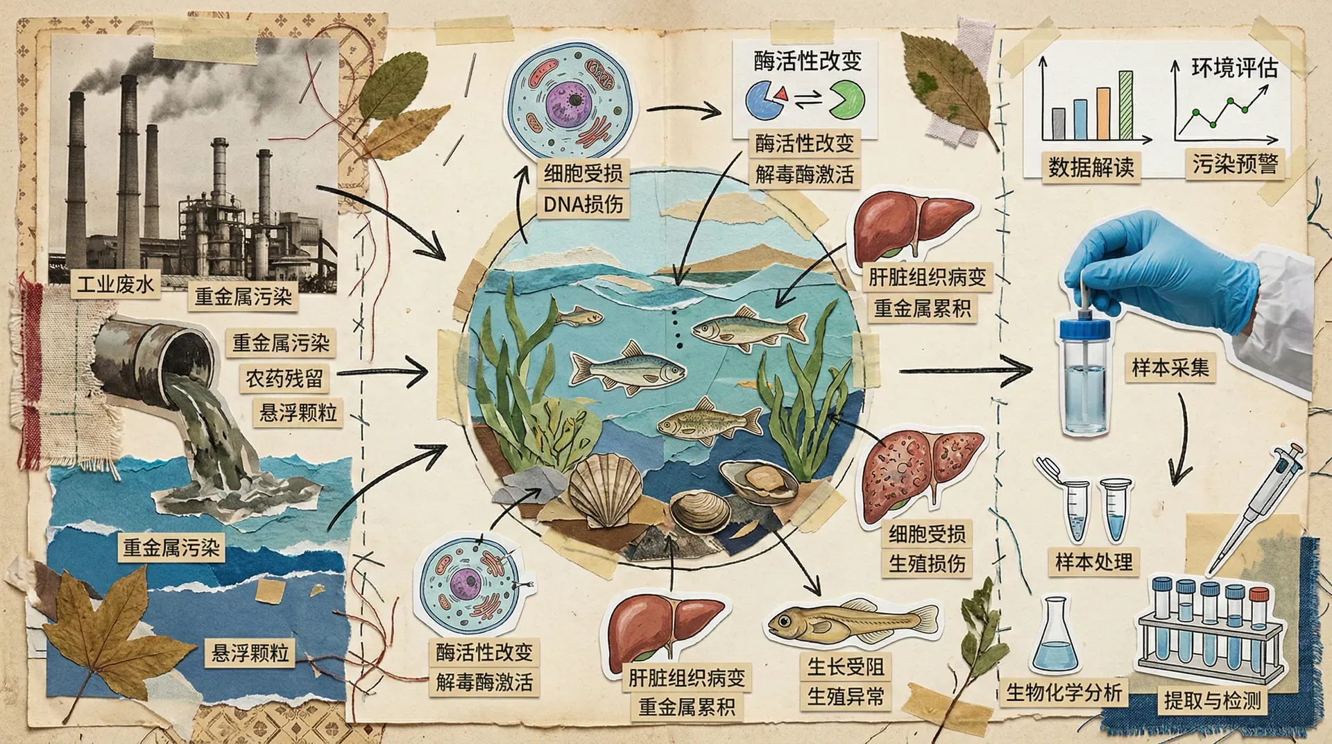 生物标志物是生物体内因暴露于污染物而产生的可测量的生化、细胞或生理变化。与观察整个生物体的变化相比,生物标志物能够更早、更灵敏地检测到污染的影响。