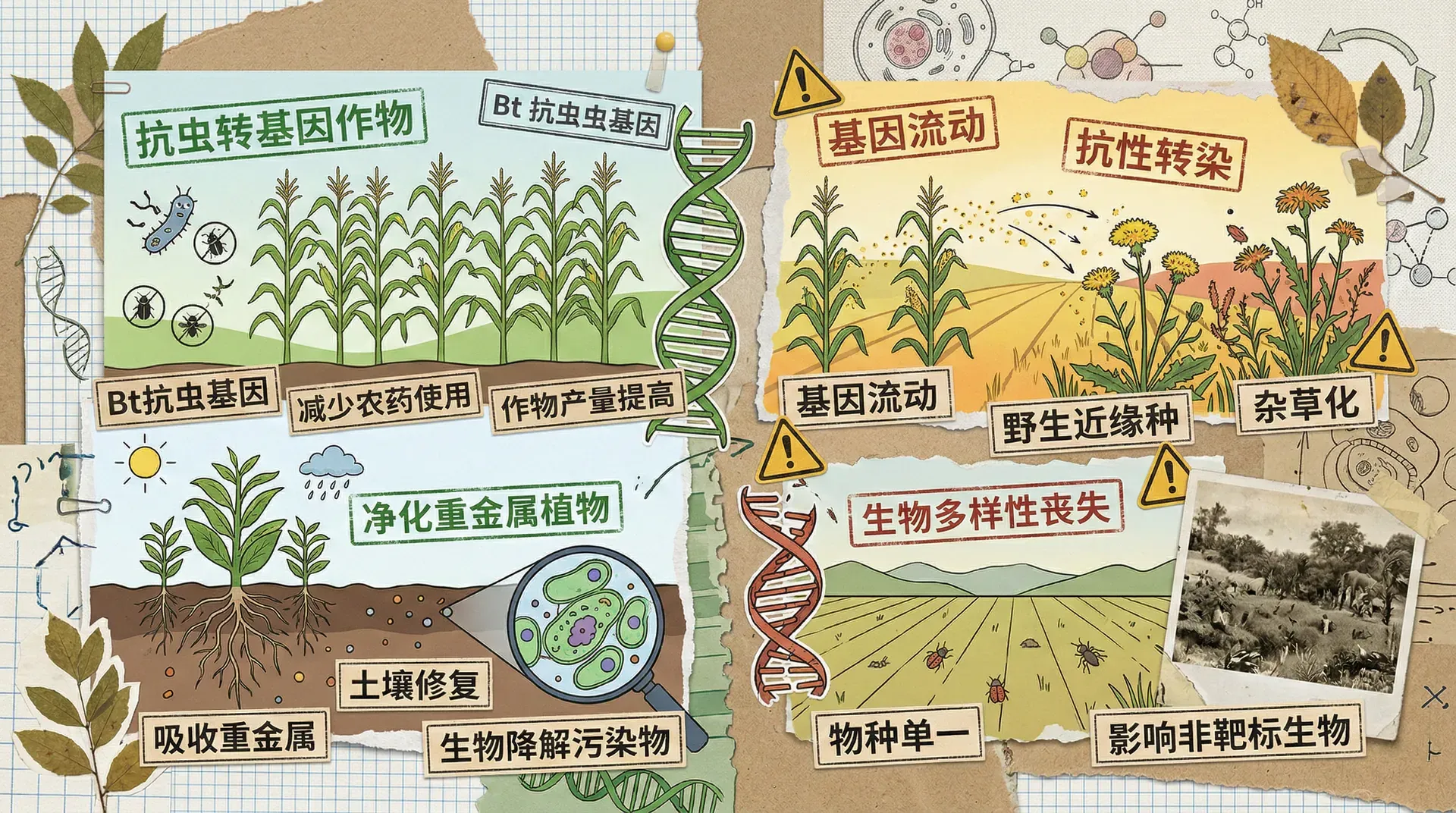 随着转基因生物在环境中的试验和应用推进,风险评估愈发重要,特别关注以下几个维度: