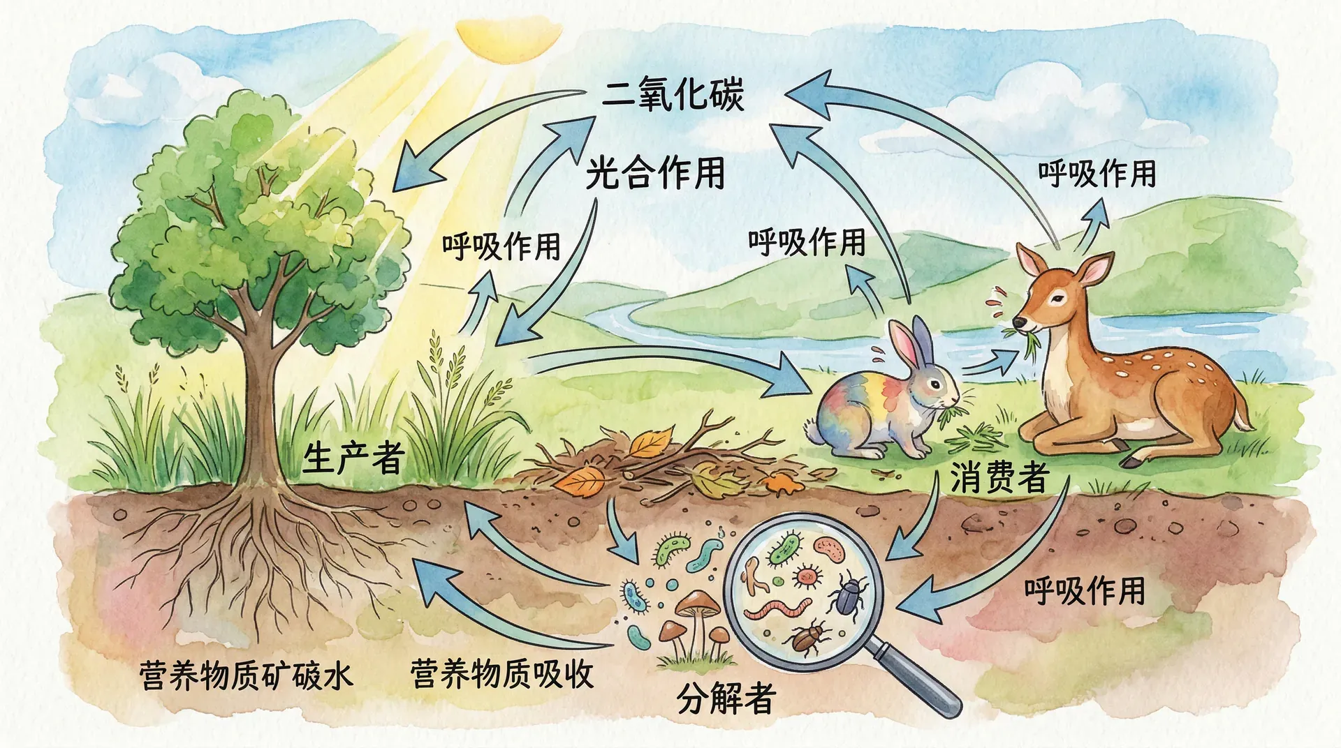 理解物质循环的原理和规律,对于生态系统管理和环境保护具有重要意义。通过科学的管理措施,我们可以优化物质循环过程,提高资源利用效率,减少环境污染,增强生态系统的碳汇功能,为建设美丽中国和应对全球气候变化做出贡献。