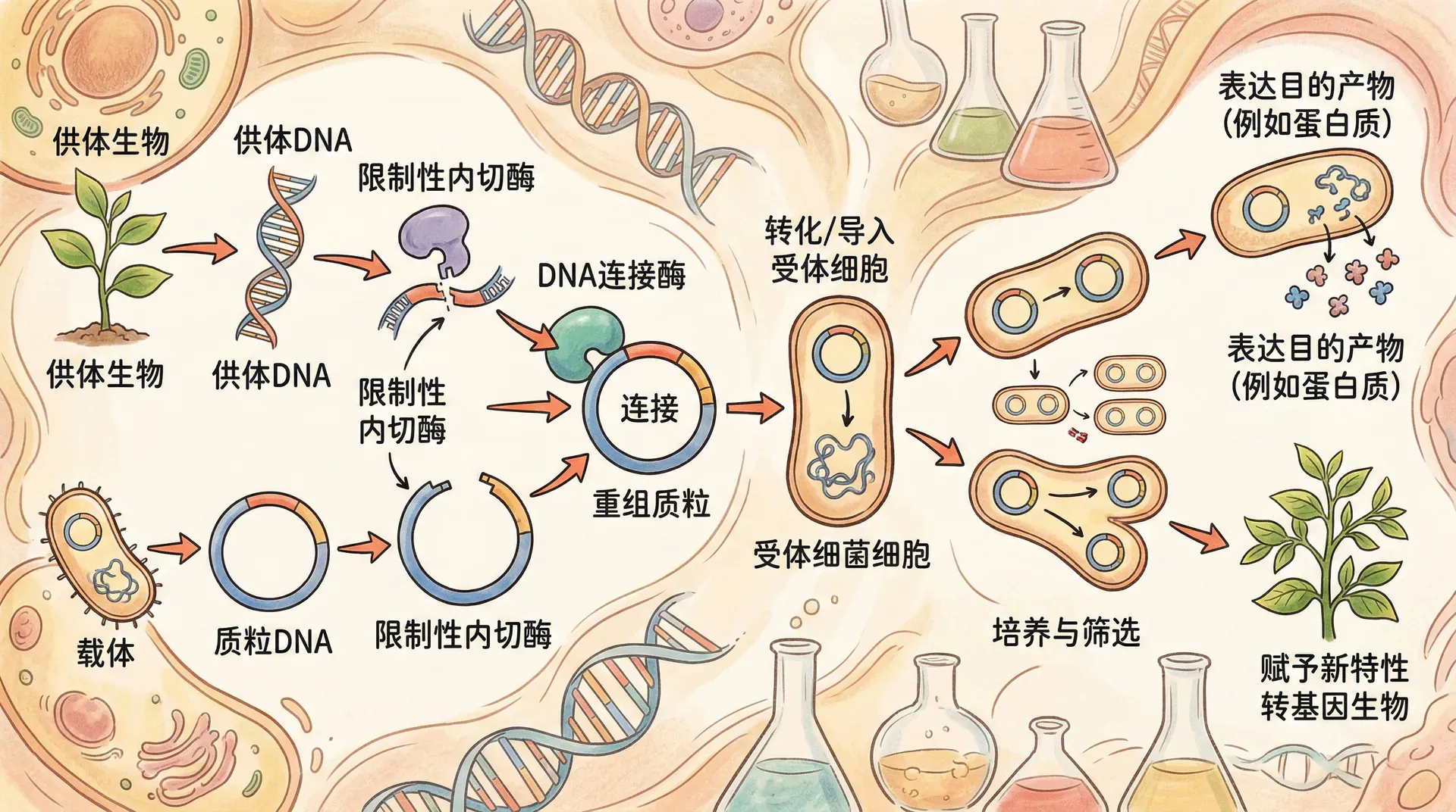 基因工程(重组DNA技术)通常包括几个核心步骤。下方对主要步骤及常用方法进行了总结: