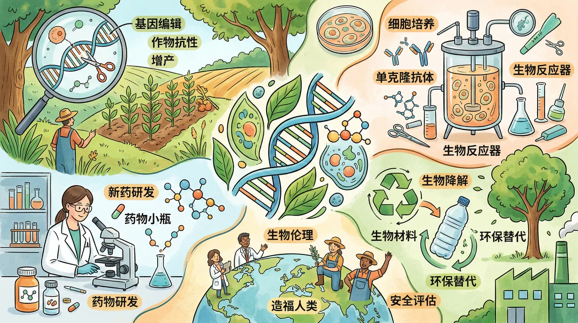 现代生物技术作为21世纪最具革命性和推动力的科学前沿之一,正在深刻改变人类社会的生产、生活乃至思维方式。随着分子生物学、遗传工程等学科的突破,生物技术广泛渗透到医药健康、农业生产、能源开发、环境保护和工业制造等多个关键领域,带来了颠覆性的创新机会。