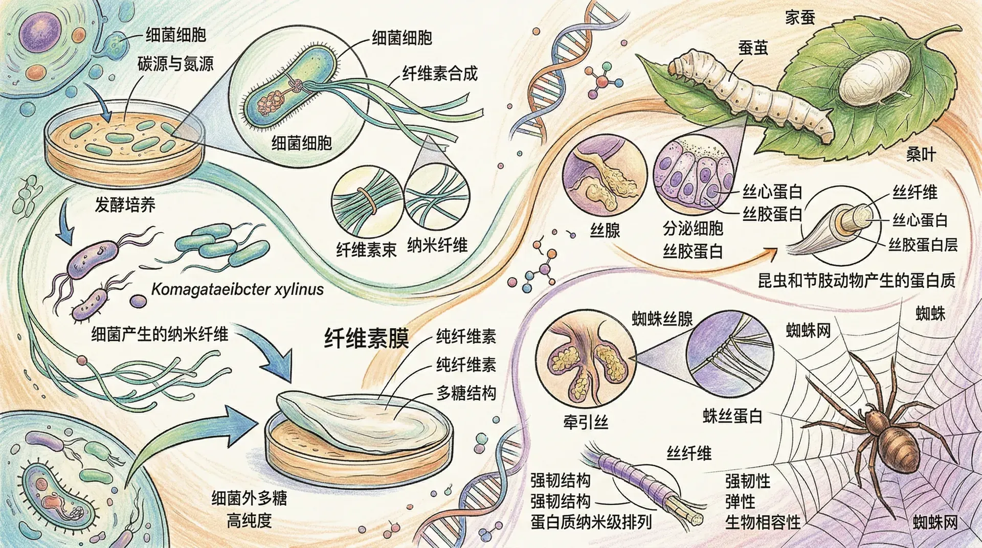在高价值蛋白方面,通过合成生物学方法实现了生物丝蛋白、胶原蛋白等材料的微生物合成。以重组蜘蛛丝蛋白为例,将其编码基因导入大肠杆菌或酿酒酵母,可实现大规模发酵生产。这些蛋白可应用于高性能纤维、仿生复合材料或医用敷料等领域。新希望六和集团已实现重组胶原蛋白产业化,提升了国内高端生物材料自给率。