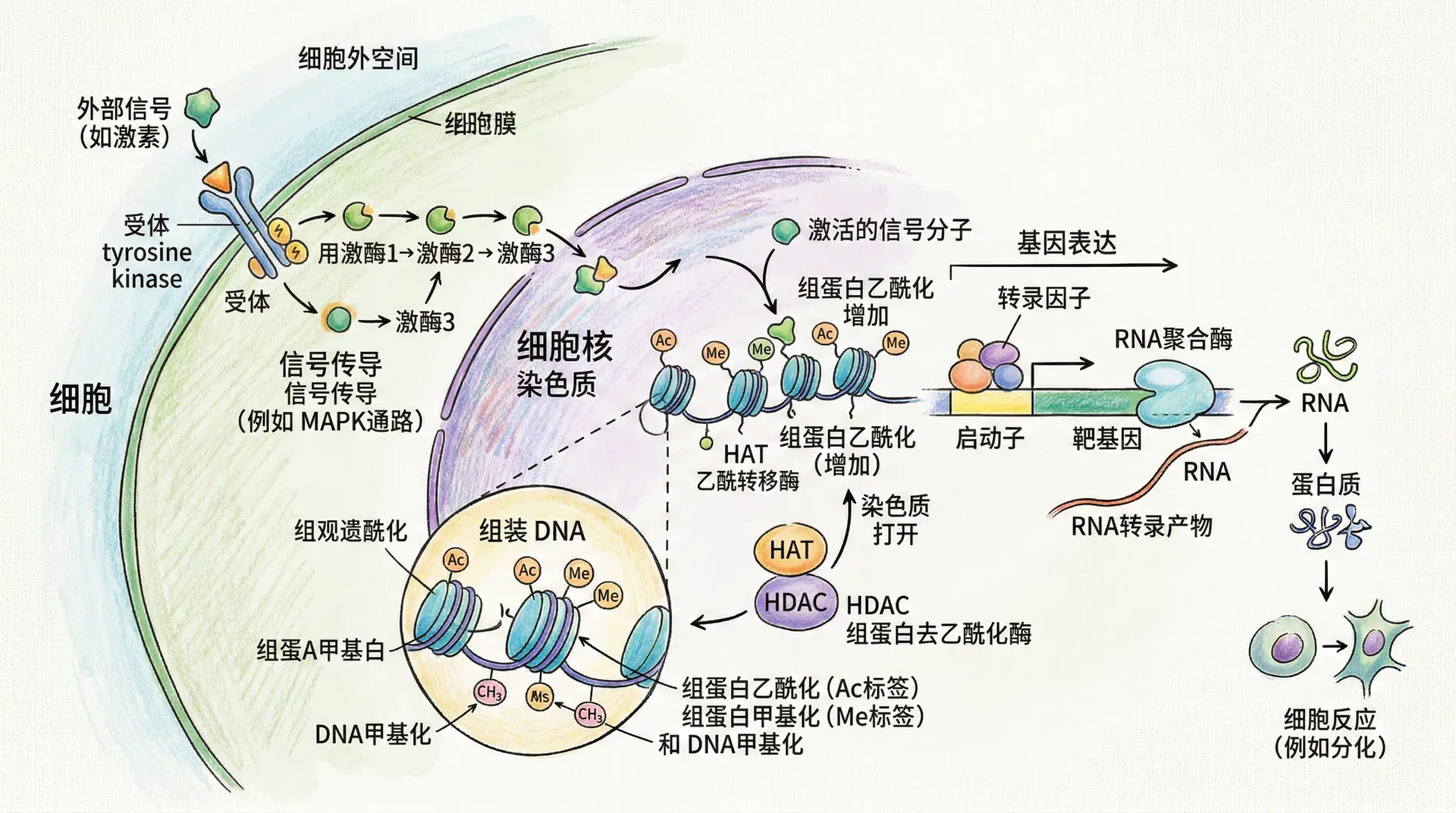 知识点:细胞命运决定的分子机制、表观遗传修饰、信号转导通路、形态发生素梯度