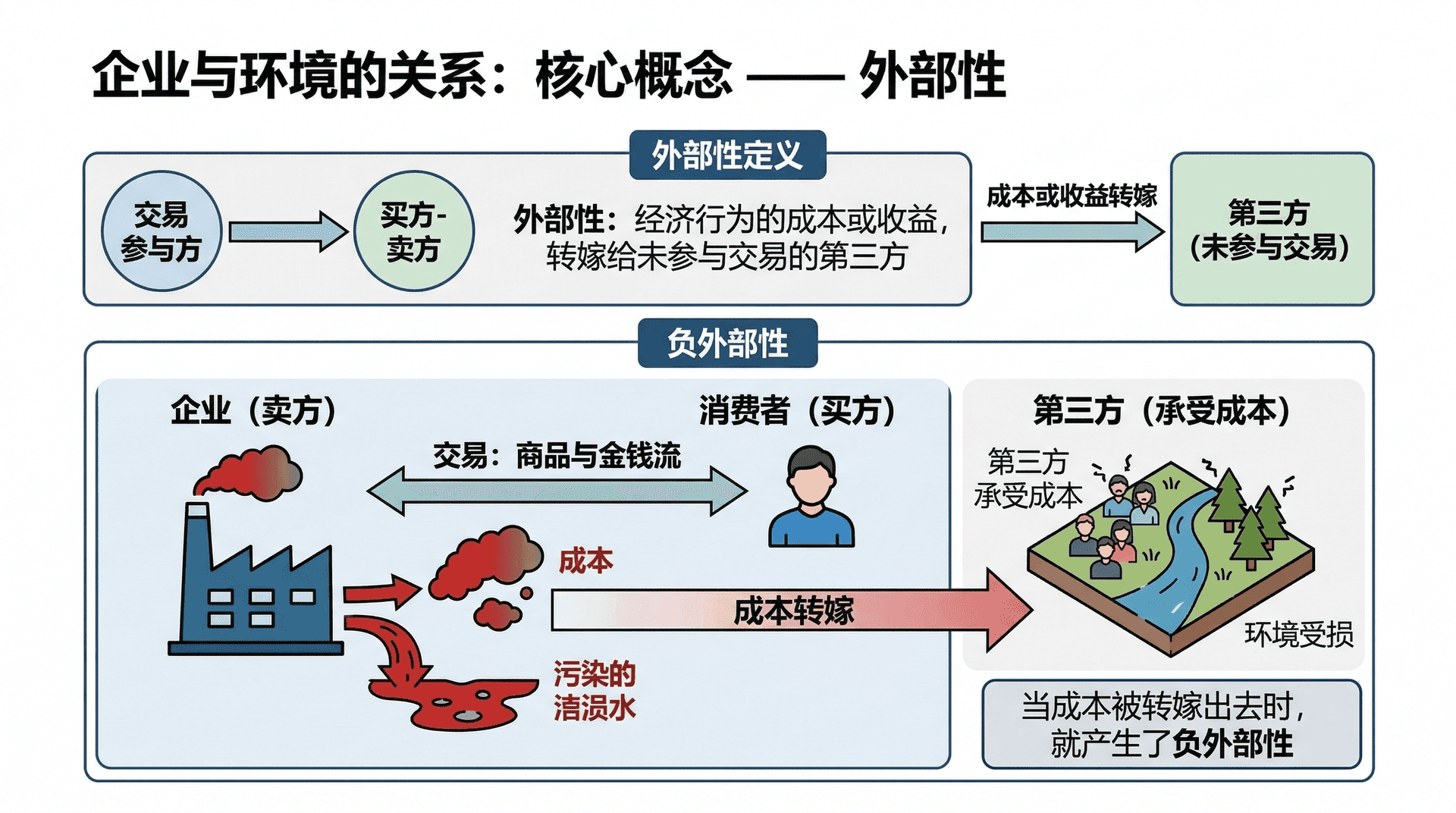 理解企业与环境的关系,需要先理解一个经济学中的核心概念——外部性(externality)。