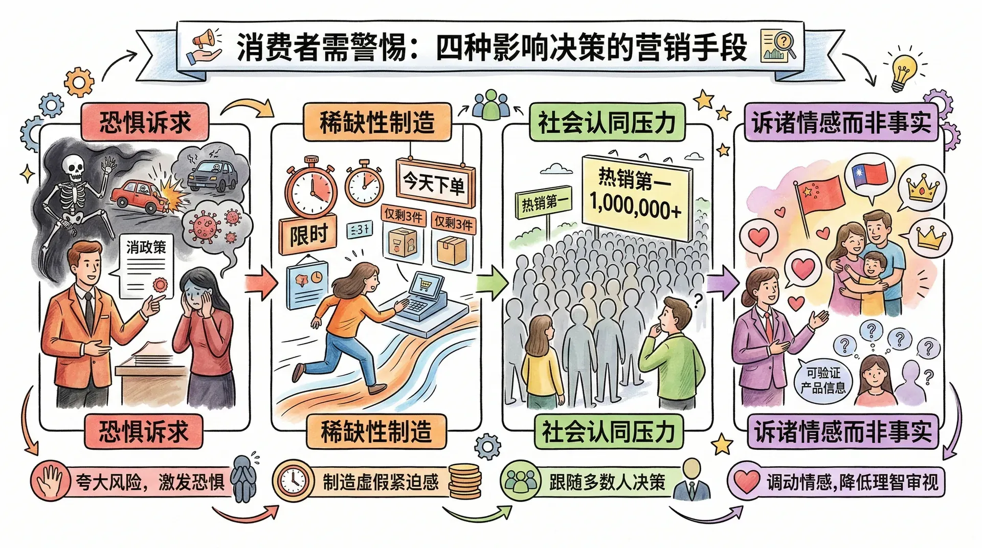 在消费现场,强迫可以以很多形式出现:某些电话销售人员会用“只剩最后一个名额”的假信息制造紧迫感;某些保险销售会利用老年人对疾病的恐惧反复施压;某些培训机构会要求家长当场签合同,不给时间考虑。