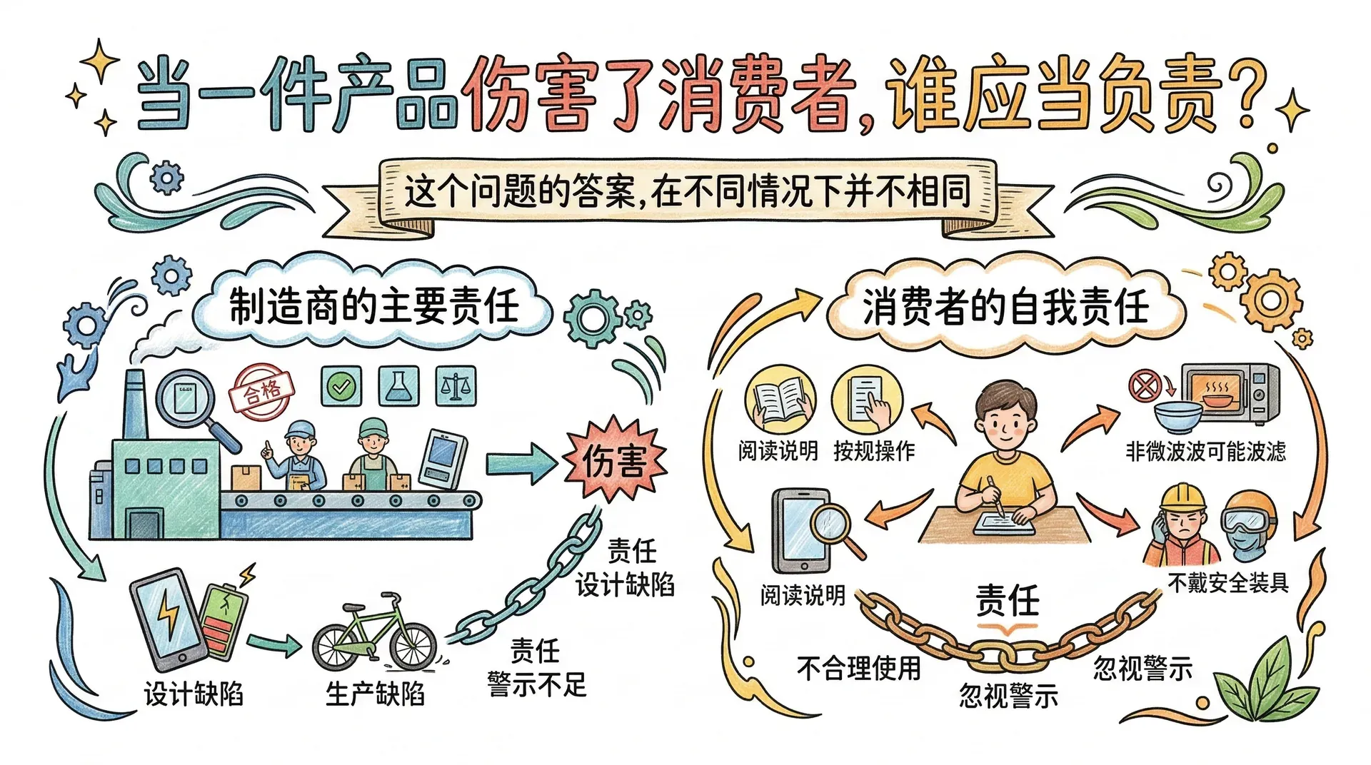 责任往往不是全有全无的,而是在制造商和消费者之间的一种分配。关键变量是:信息是否足够充分?消费者是否真正了解风险?企业是否采取了合理的预防措施?