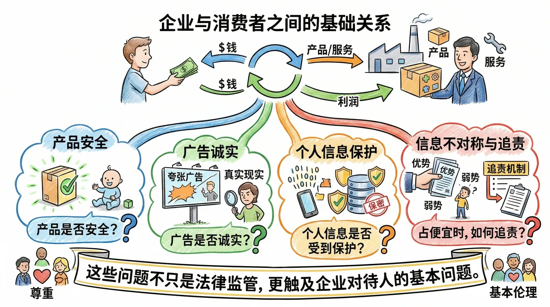 企业与消费者之间的关系,是商业世界中最基础的关系之一。消费者花钱购买产品或服务,企业则提供这些产品或服务换取利润。这个交换过程看起来简单,但其中隐藏着大量值得关注的伦理问题:产品是否安全?广告是否诚实?消费者的个人信息是否受到保护?当企业利用信息不对称占消费者便宜时,该如何追责?