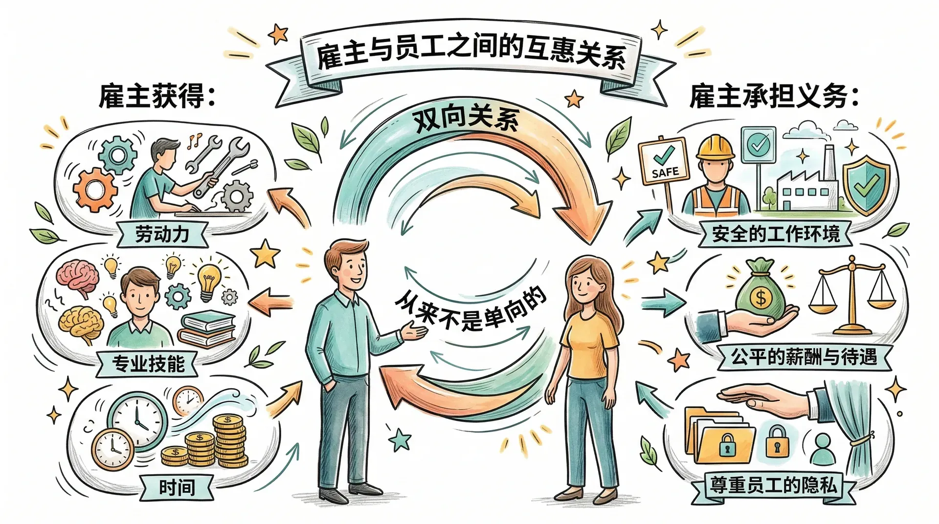 雇主与员工之间的关系,从来不是单向的。雇主从员工那里获取劳动力、专业技能和时间,相应地,雇主也对员工承担一系列义务。