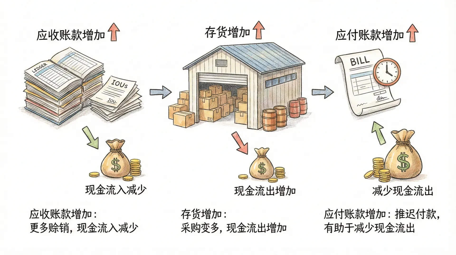 应收账款、存货、应付账款变动与现金流: