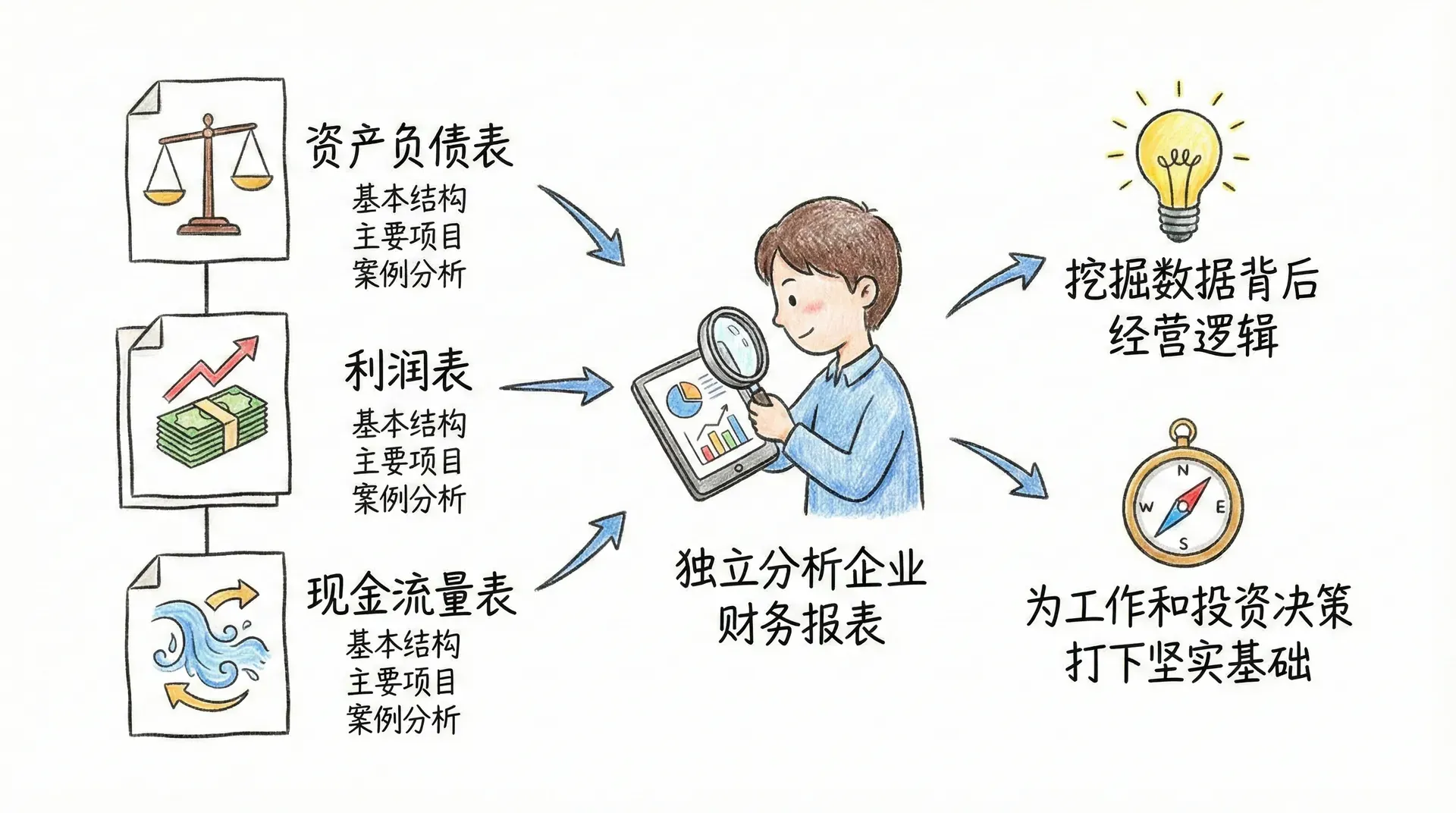 此次内容将带领大家系统认识三大核心财务报表:资产负债表、利润表和现金流量表。我们不仅会讲解每张报表的基本结构和主要项目,还会结合案例,介绍常见的分析方法与实际应用。通过学习,大家将能够独立分析企业的财务报表,挖掘数据背后的经营逻辑,为日后实际工作和投资决策打下坚实基础。
