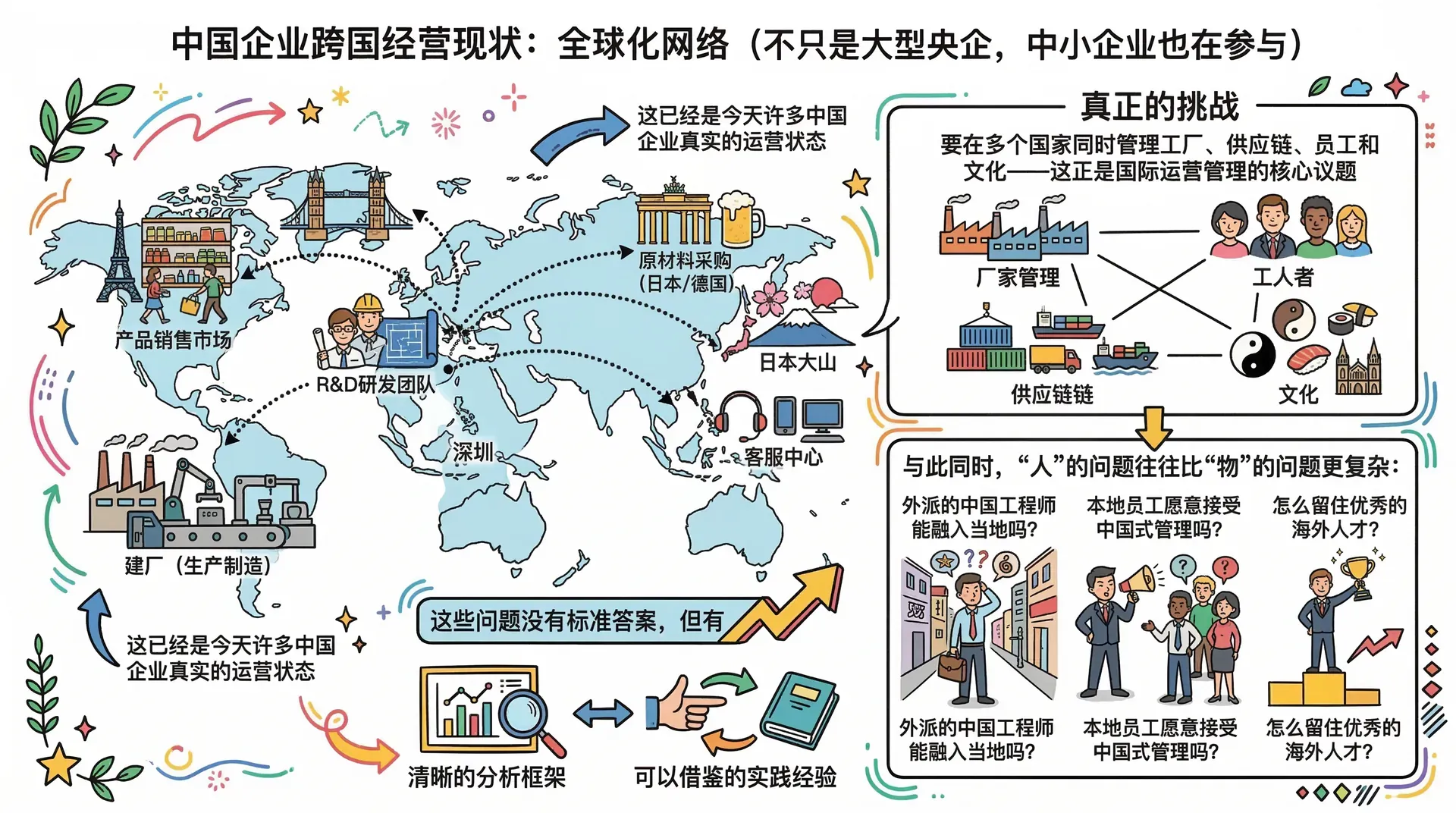 然而,把一条生产线搬到海外,远不是最难的事。真正的挑战,在于如何在多个国家同时管理工厂、供应链、员工和文化——这正是国际运营管理的核心议题。与此同时,“人”的问题往往比“物”的问题更复杂:外派的中国工程师能融入当地吗?本地员工愿意接受中国式管理吗?怎么留住优秀的海外人才?