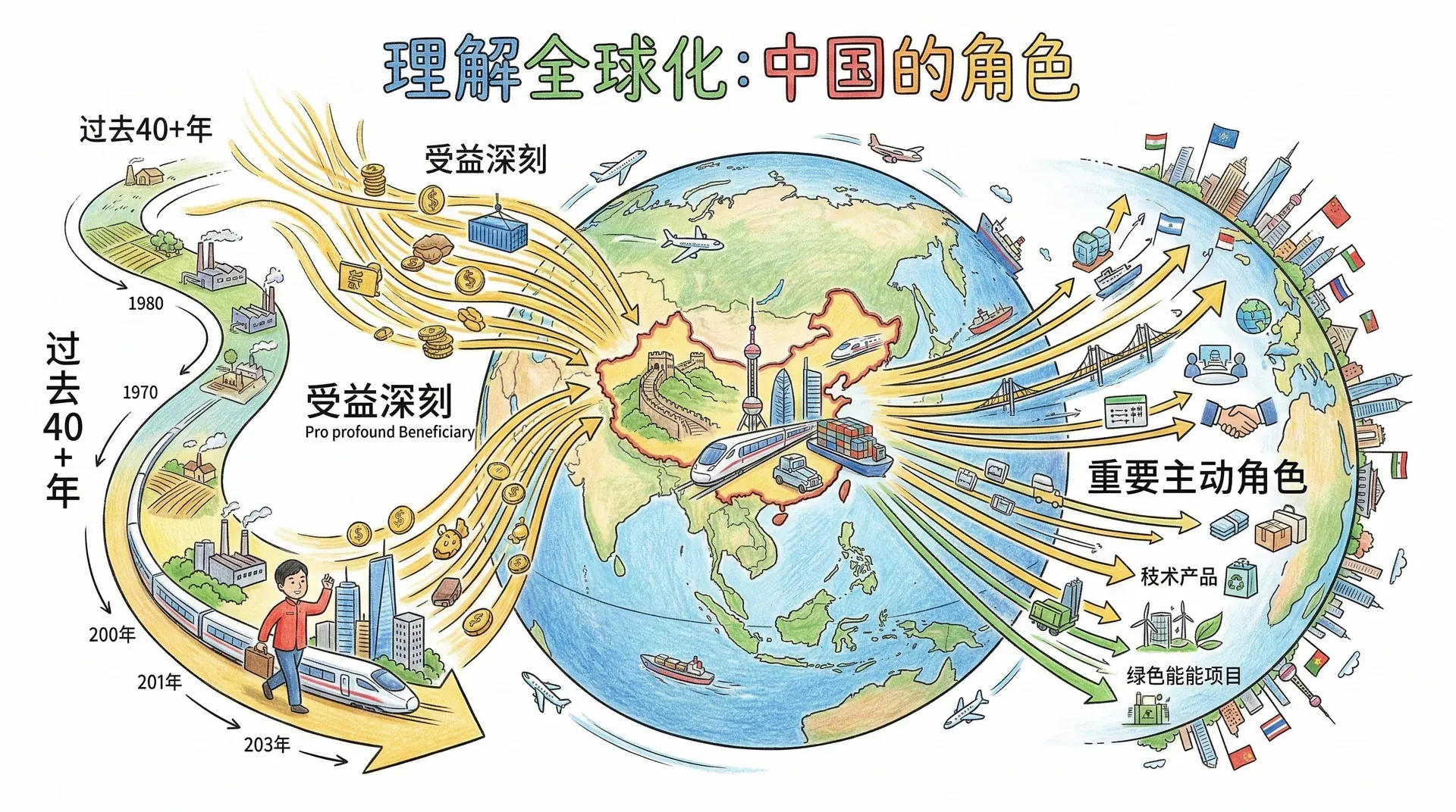 理解全球化,离不开理解中国的角色。过去40多年,中国是参与全球化进程中受益最为深刻的国家之一,同时也在全球化格局中扮演了越来越重要的主动角色。