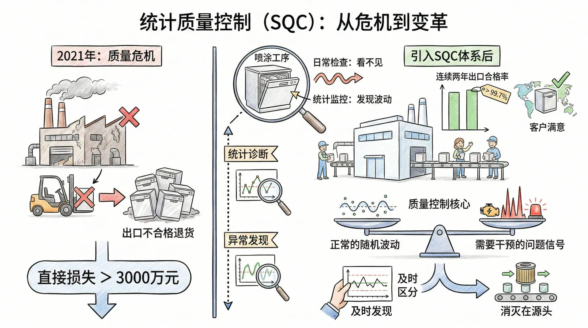 2021年,某国内头部家电企业因一批出口欧洲的洗碗机在抽检中不合格率超标,被海外客户退货,直接损失超过3000万元。调查结果显示:问题不是出在原材料,而是出在生产线某道喷涂工序的温度波动——这种波动在日常肉眼检查中完全看不出来,只有通过系统性的统计监控才能发现异常趋势。事后,该企业全面引入了统计过程控制体系,此后连续两年出口合格率保持在99.7%以上。