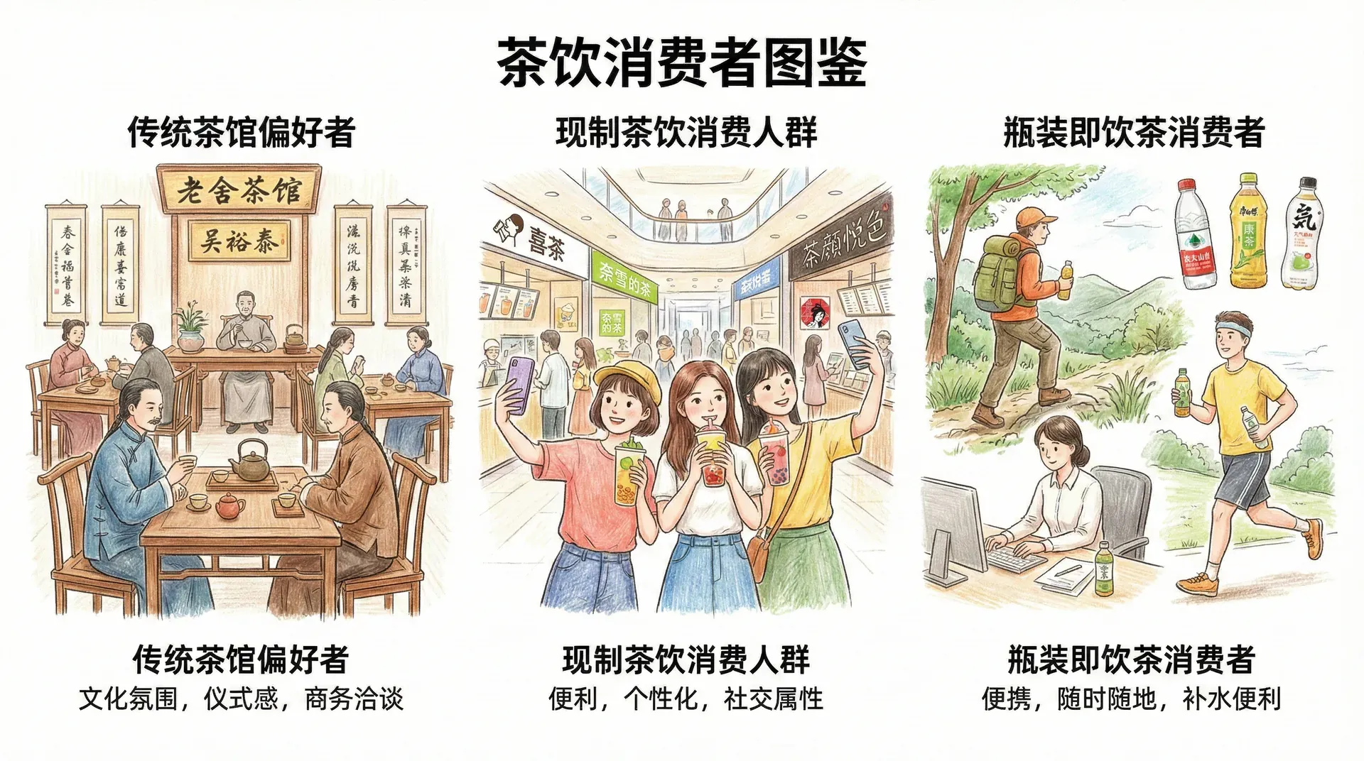 以上三类群体分别对应不同的产品设计、包装风格、定价区间以及推广渠道。例如喜茶等品牌更注重互联网营销、社交平台传播;而老舍茶馆则更强调“文化传承”和线下体验。