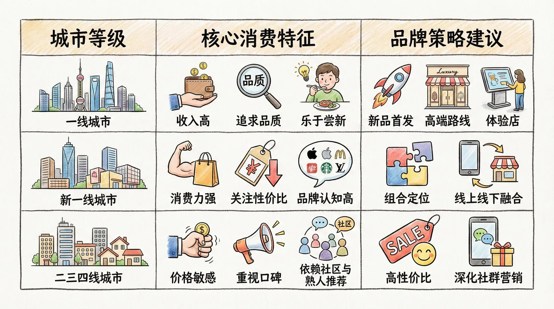 城市层级结构同样影响巨大。不同城市消费者在收入、审美、消费观念等方面迥异:
