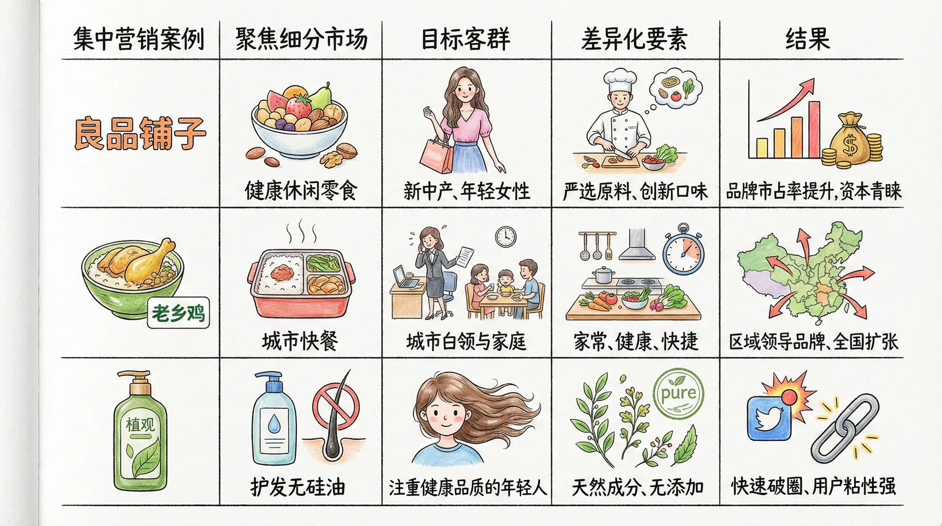 例如,良品铺子早期专注于“品质健康休闲零食”市场,将产品、品牌、渠道聚焦到对原料、品质和包装有更高要求的25-35岁新中产群体,从而脱颖而出,建立了鲜明认知。