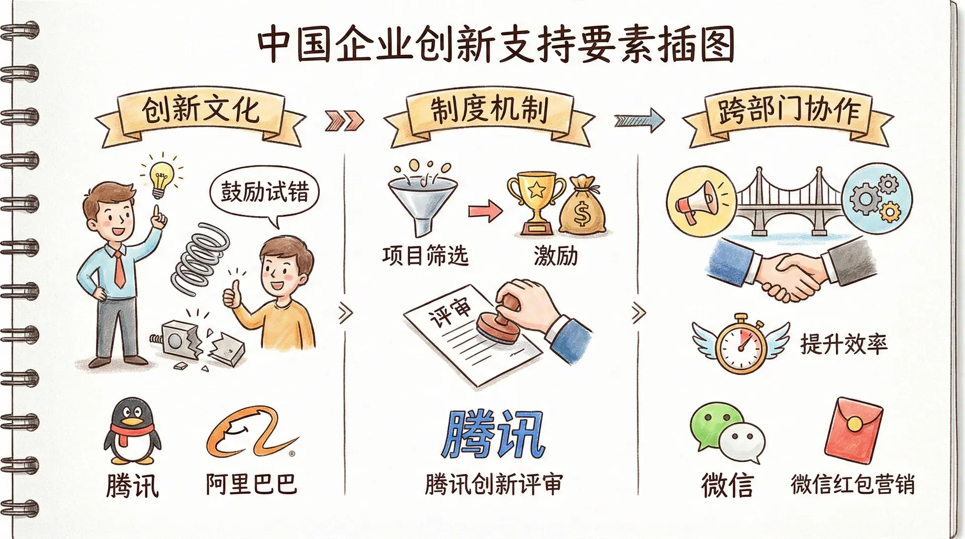 组织层面支持是创新落地的基础,主要包括创新文化、激励机制和跨部门协作。