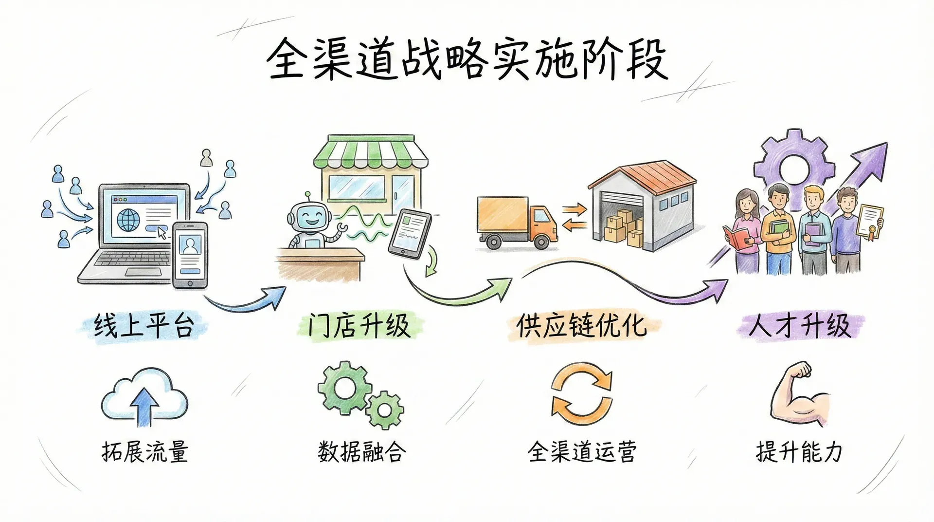 营销大变革需系统管理。典型如苏宁易购的数字化转型,从传统零售走向线上线下融合,经历了明确愿景、分阶段推进、能力提升和化解阻力等关键步骤: