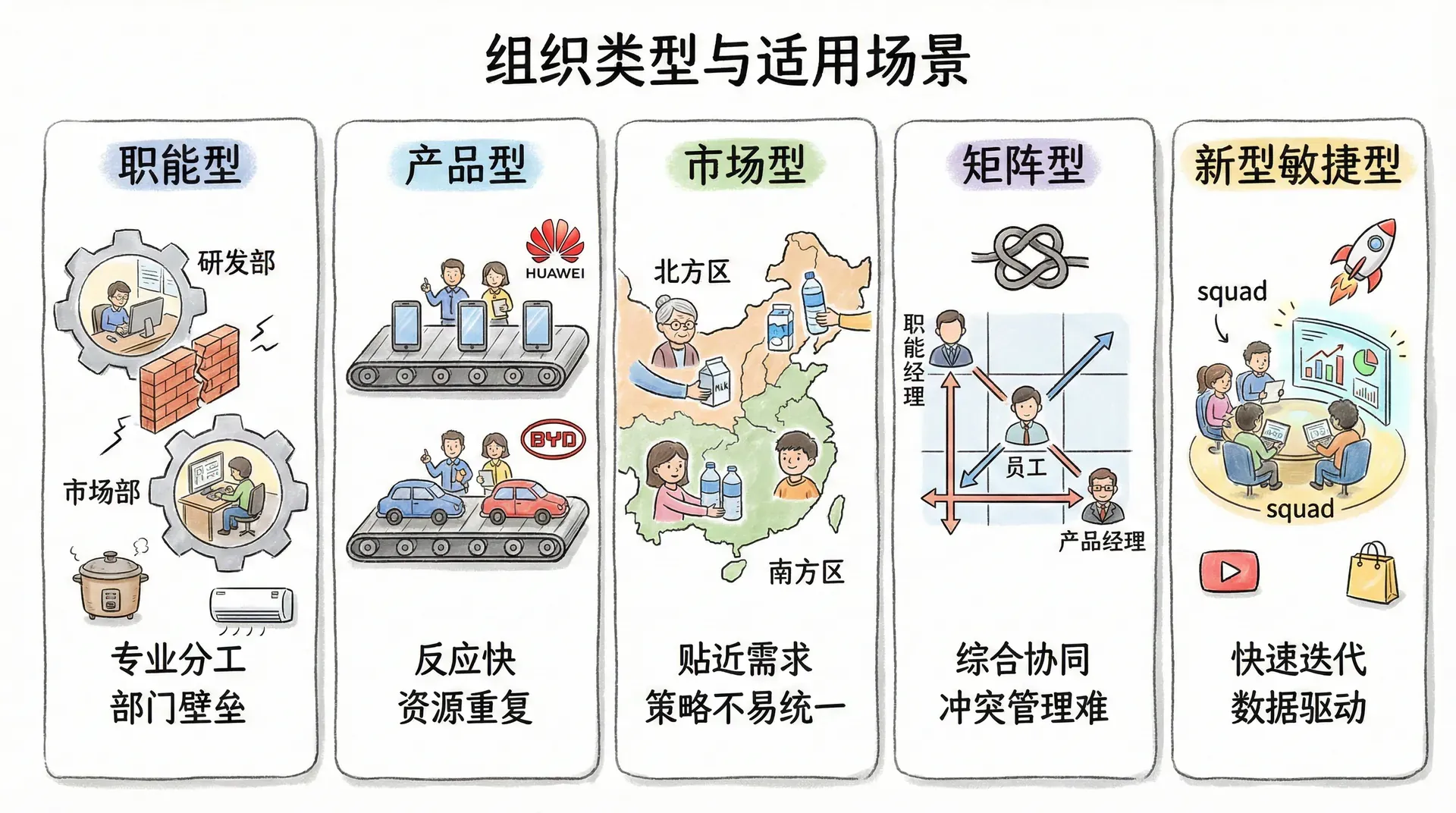 趋势:数字化与平台企业将敏捷型结构作为主流,强调全链路打通与快速创新。