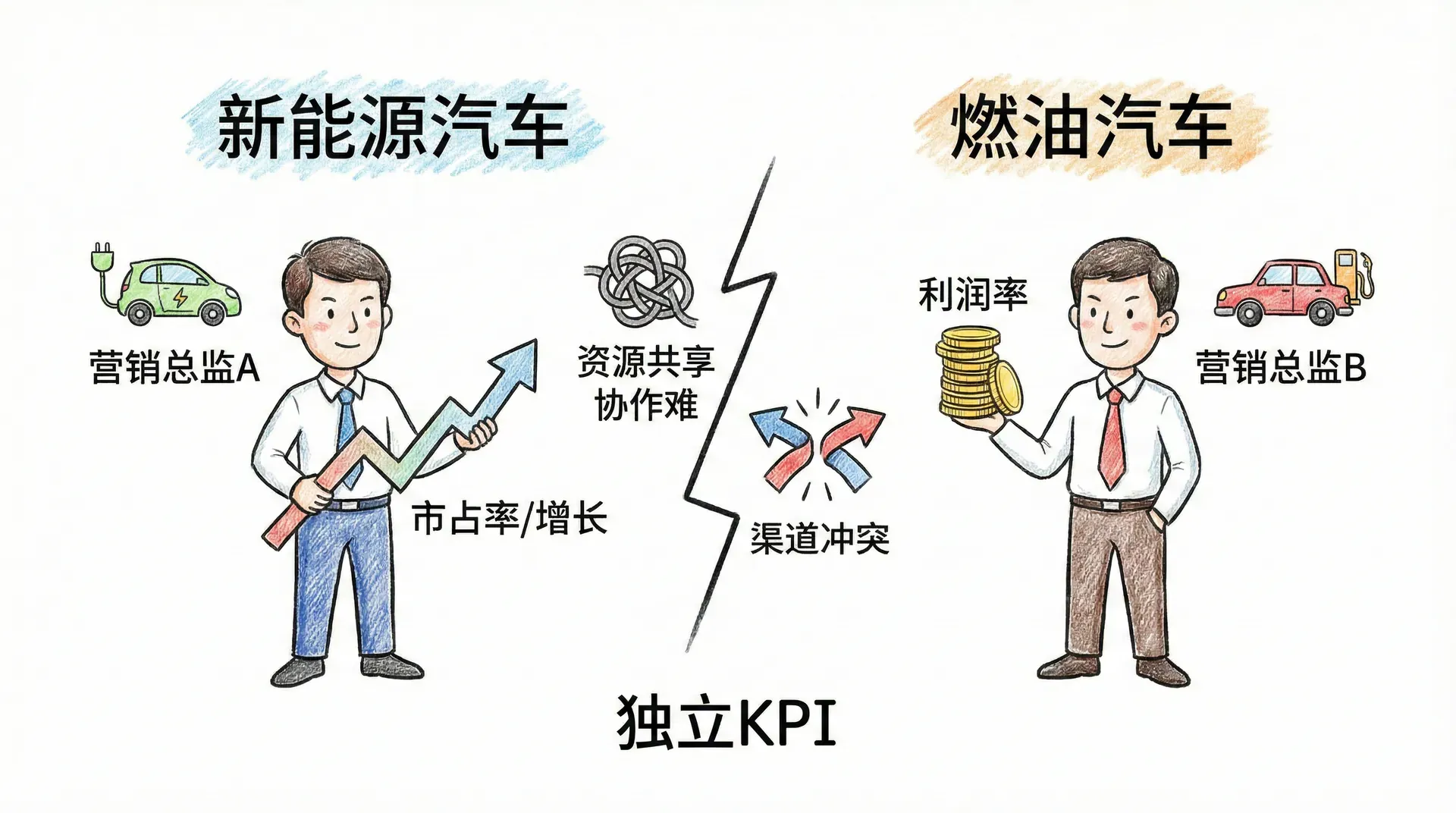 产品型组织以产品或产品线为核心组建团队,每个团队独立负责相应产品的营销全过程。以比亚迪为例,其新能源车、燃油车配置专门营销团队,分别负责市场分析、策略制定及活动执行。