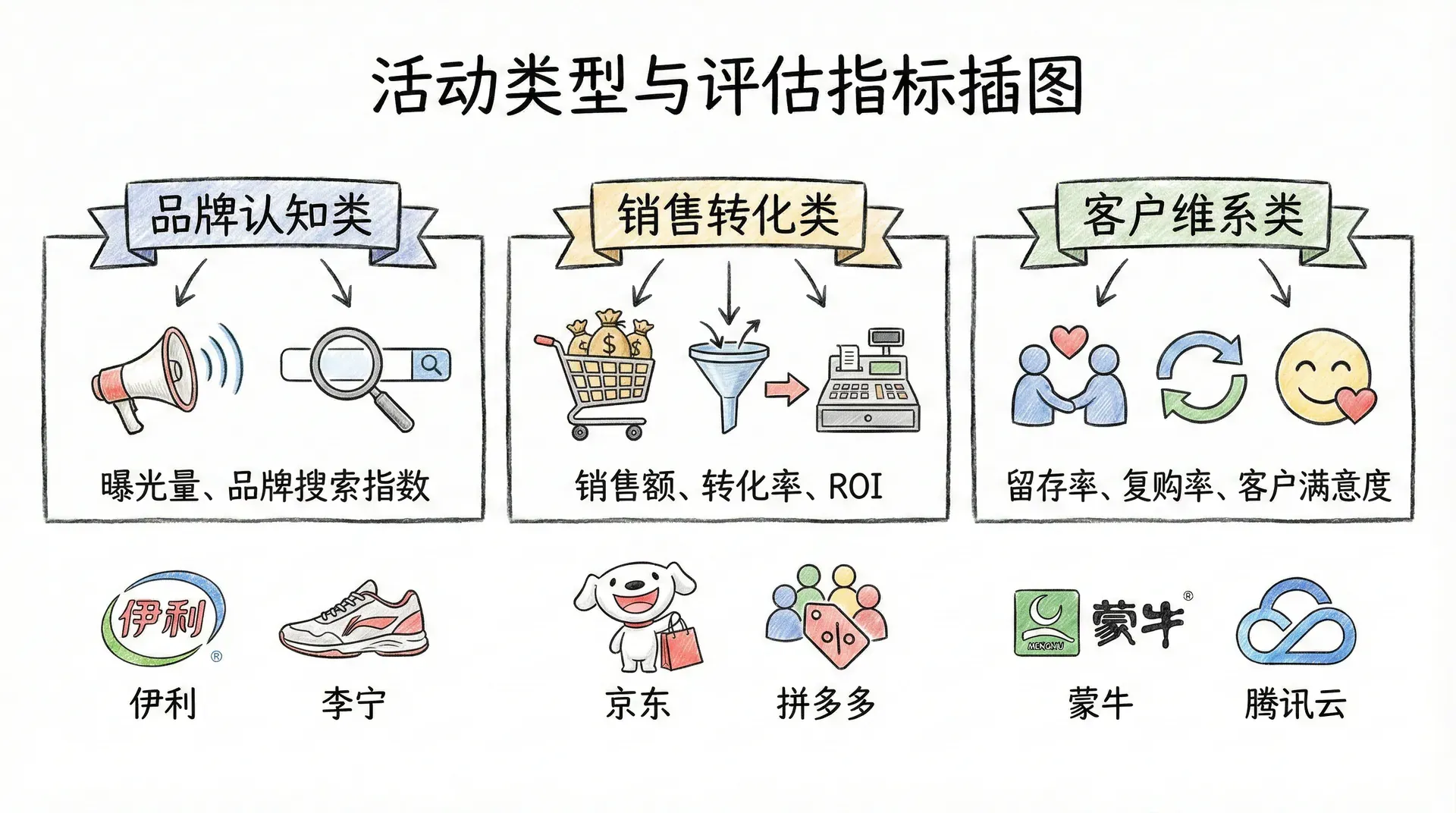 以蒙牛为例,公司特针对不同类型营销活动制定了分层评估体系,避免“一刀切”。如品牌广告侧重知名度提升和品牌美誉度考量,而促销活动则重点关注即时转化与ROI。