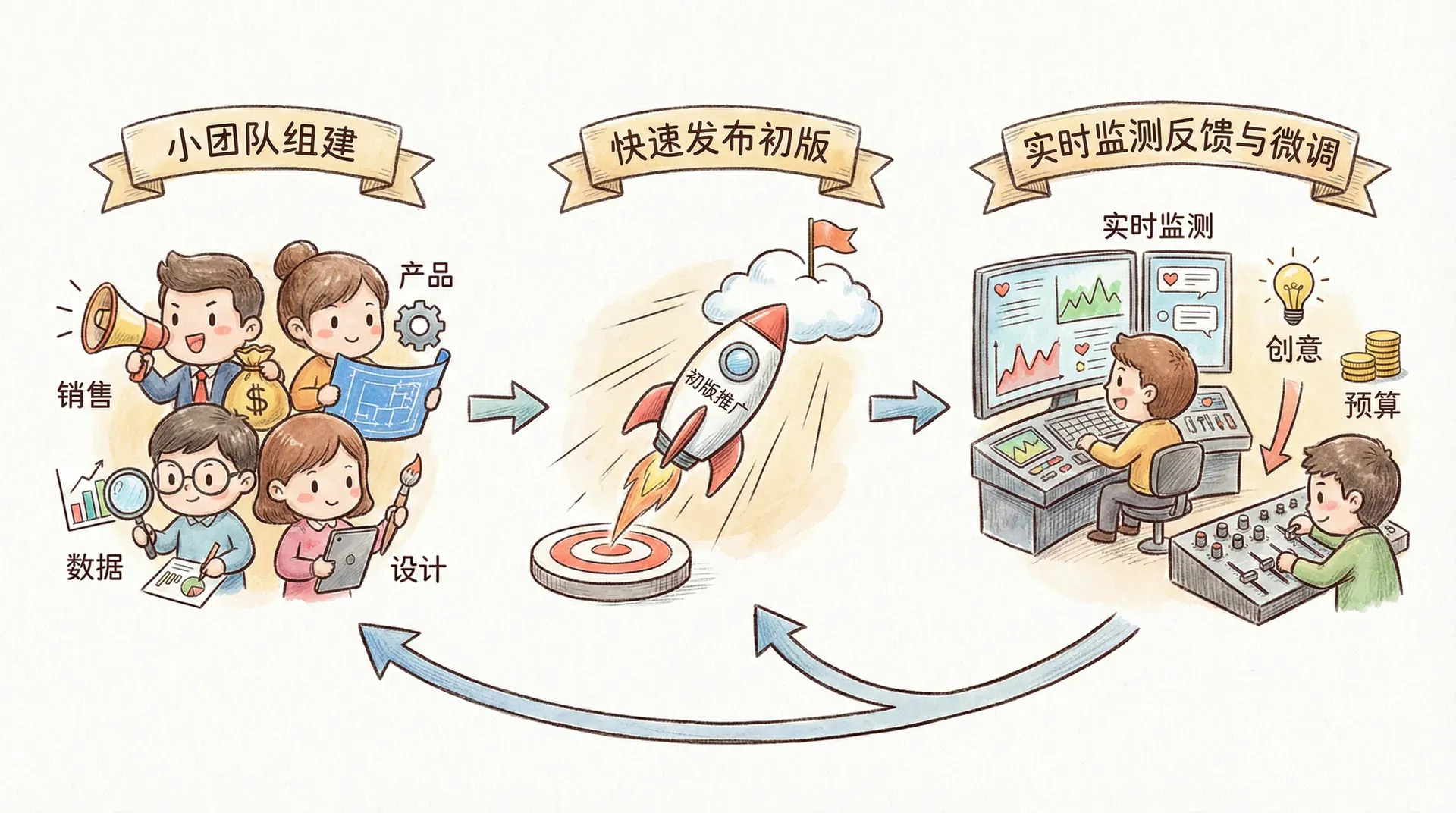 如李宁新品上市,通过A/B测试不同广告素材,实时转化效果在线比拼,分配预算向表现最佳渠道和创意倾斜,实现高效试错和持续优化。