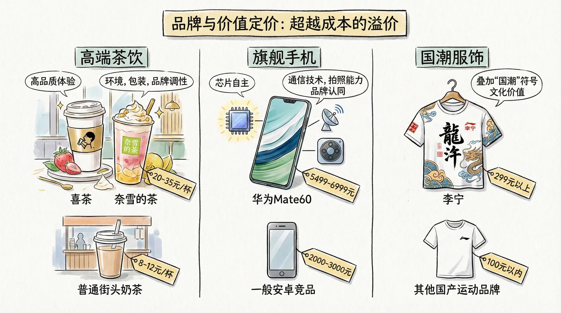 举例:奶茶赛道中,喜茶、奈雪的茶定位高端,普遍定价25-35元,中高端品牌(如茶颜悦色)定价15-20元,蜜雪冰城等主打性价比,多数产品低于10元。手机市场则是几大国产品牌密切博弈,发布新品时常有价格冲突和调整反应。