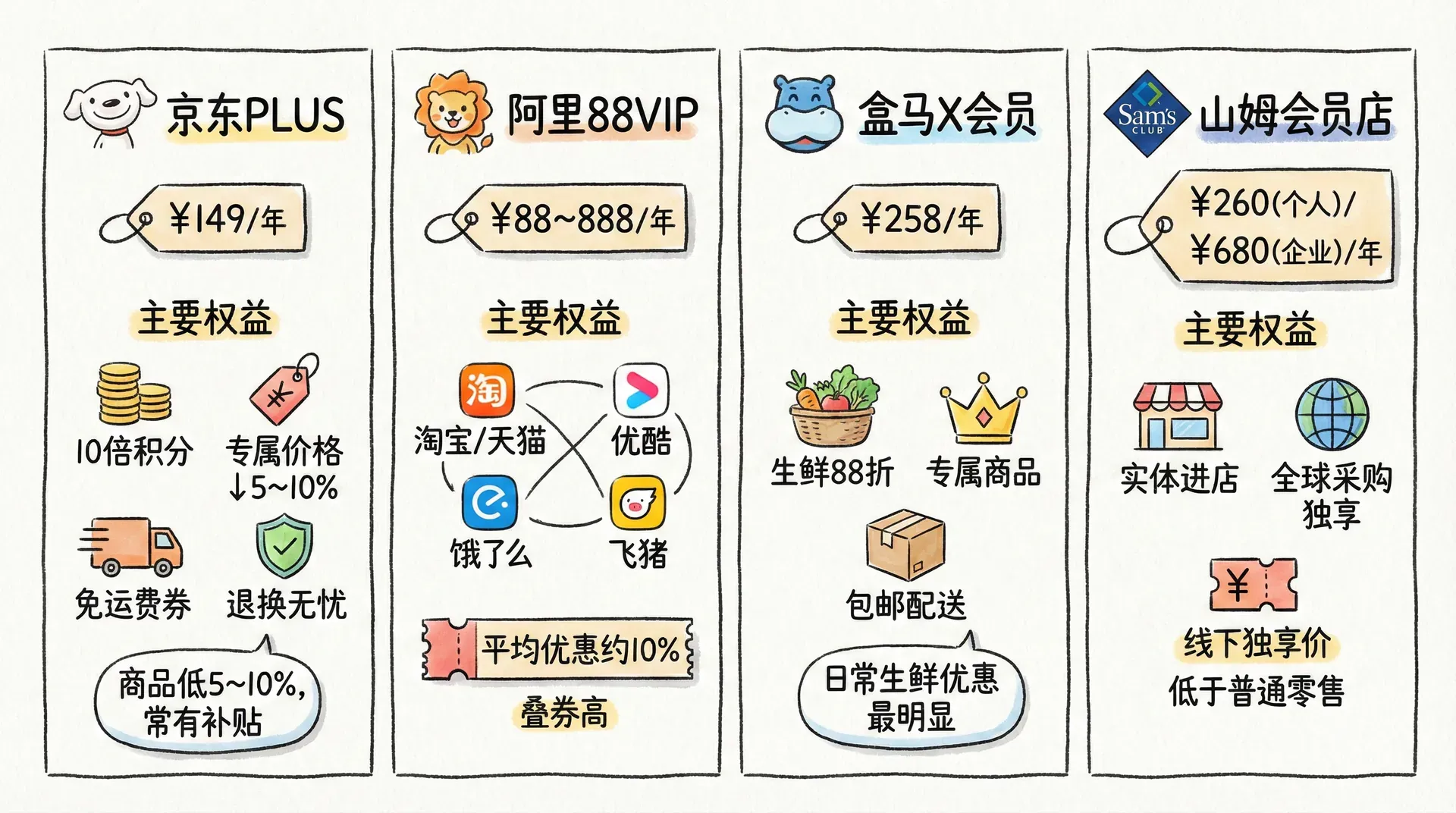 在中国,会员费不只是利润来源,也是提升用户黏性、锁定长期复购和高客单成交的重要策略。例如,京东PLUS会员常年保持高达3000万名付费用户,显著提升用户年均购物次数和客单价;山姆会员店完全依靠会员制,入场即会员,靠年费和高复购保持强盈利能力。