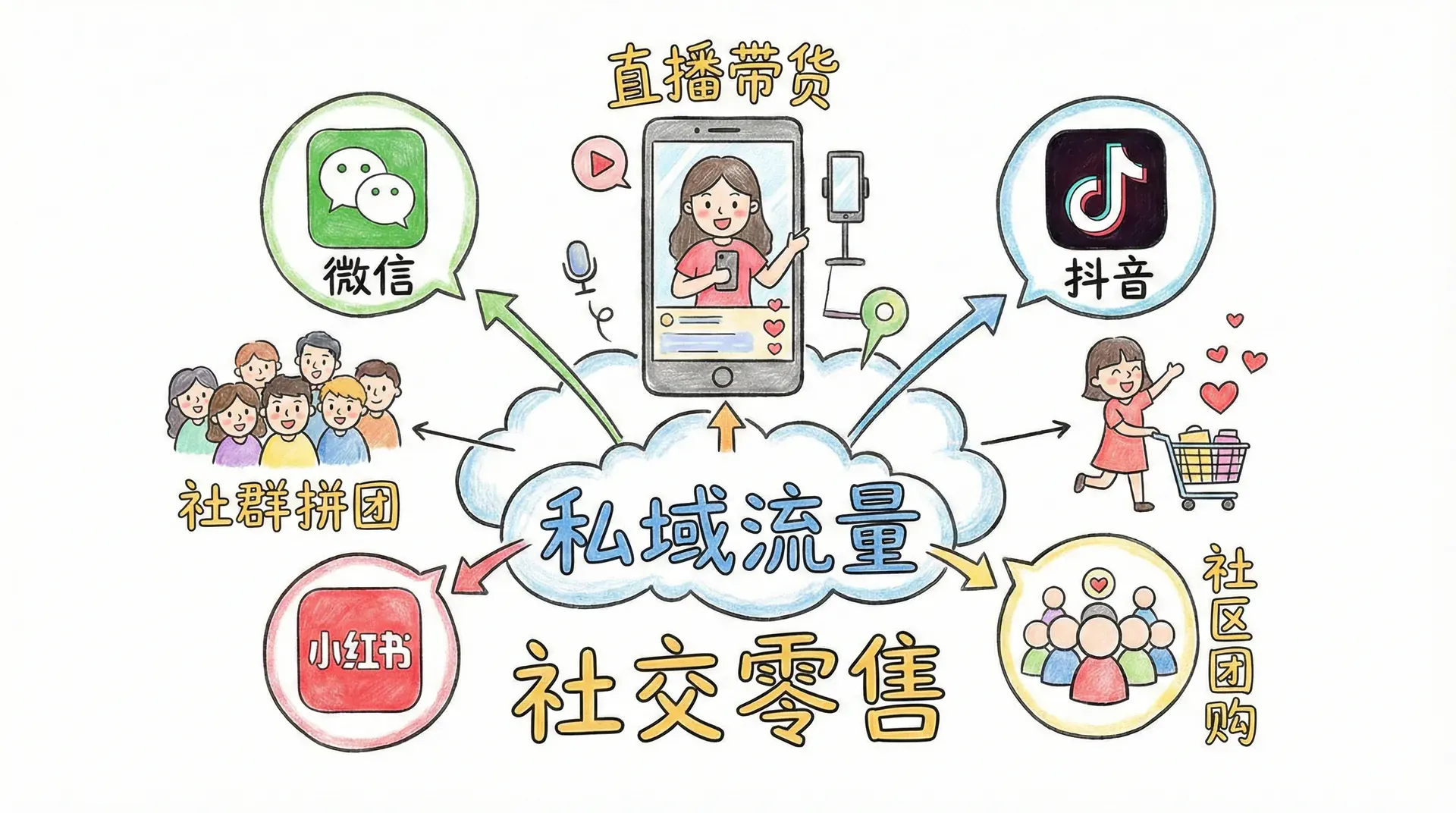 社交零售通过微信、抖音、小红书等社交平台,结合“私域流量”运营,实现基于信任的商品推广和交易。社区团购、社群拼团、直播带货等模式席卷中国,成为零售创新热土。
