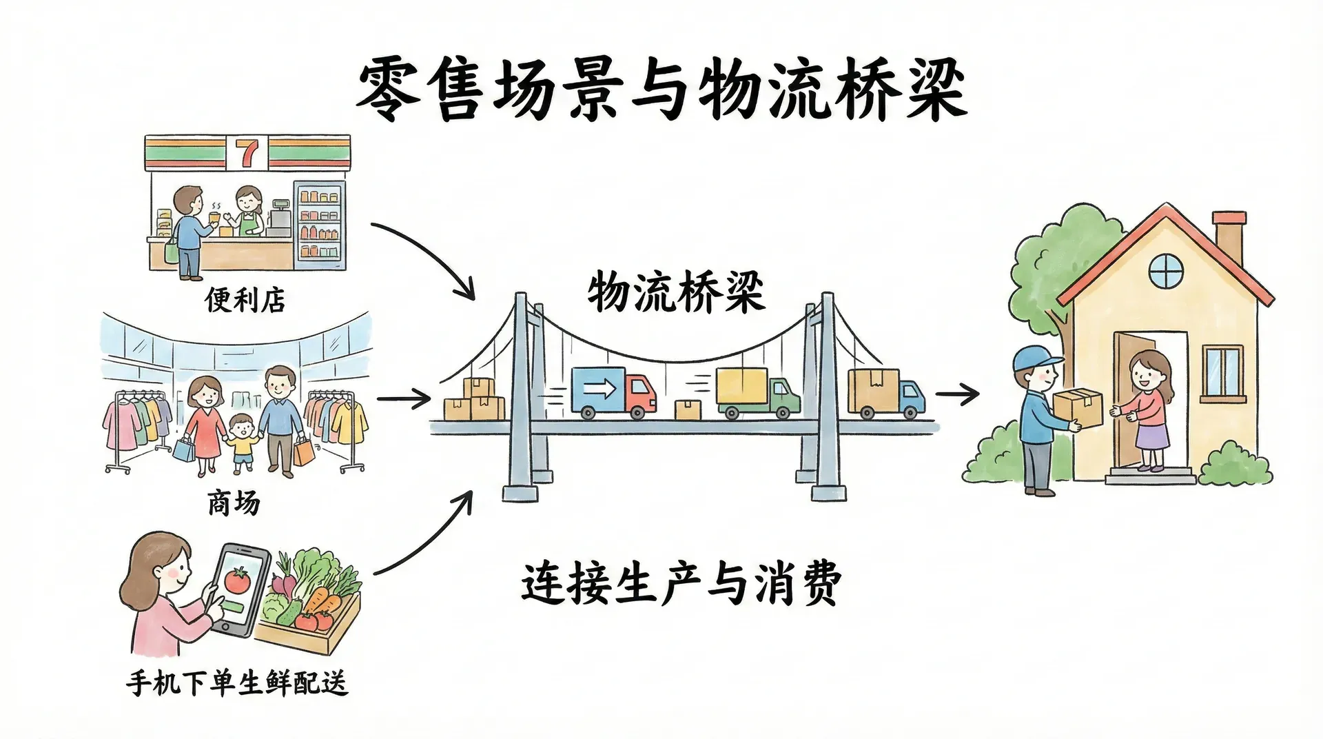 零售是商品流通的最后一个环节,直接面对消费者。每天早上走进便利店买一份早餐,周末到商场购买衣服,晚上在家用手机下单生鲜配送,这些日常生活场景都离不开零售。而物流则是连接生产与消费的桥梁,确保商品能够及时、准确地送达消费者手中。本章将探讨零售业态的演变、零售管理的关键要素,以及现代物流和供应链如何支撑零售业的高效运转。