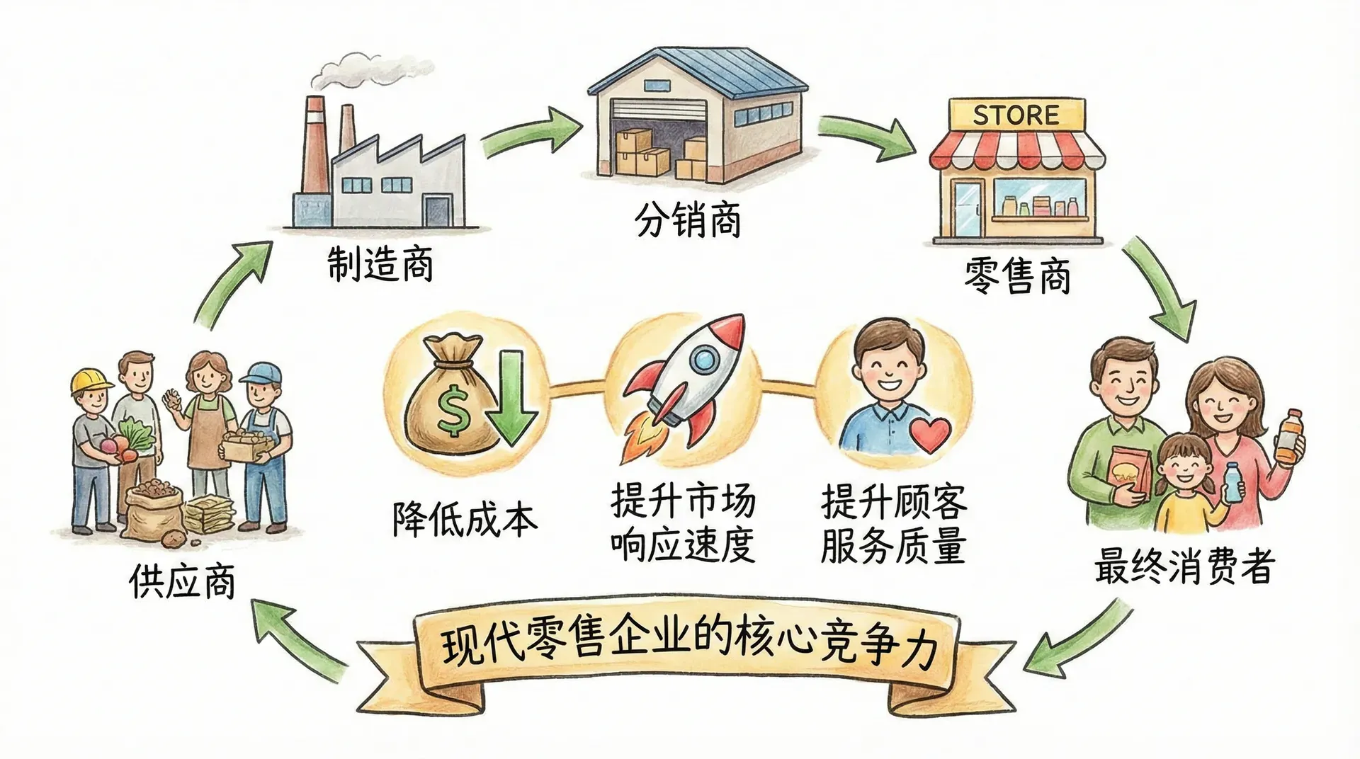 供应链是连接供应商、制造商、分销商、零售商及最终消费者的有机网络。高效的供应链不仅能显著降低企业运营成本,还能提升市场响应速度和顾客服务质量,是现代零售企业可持续发展的核心竞争力。