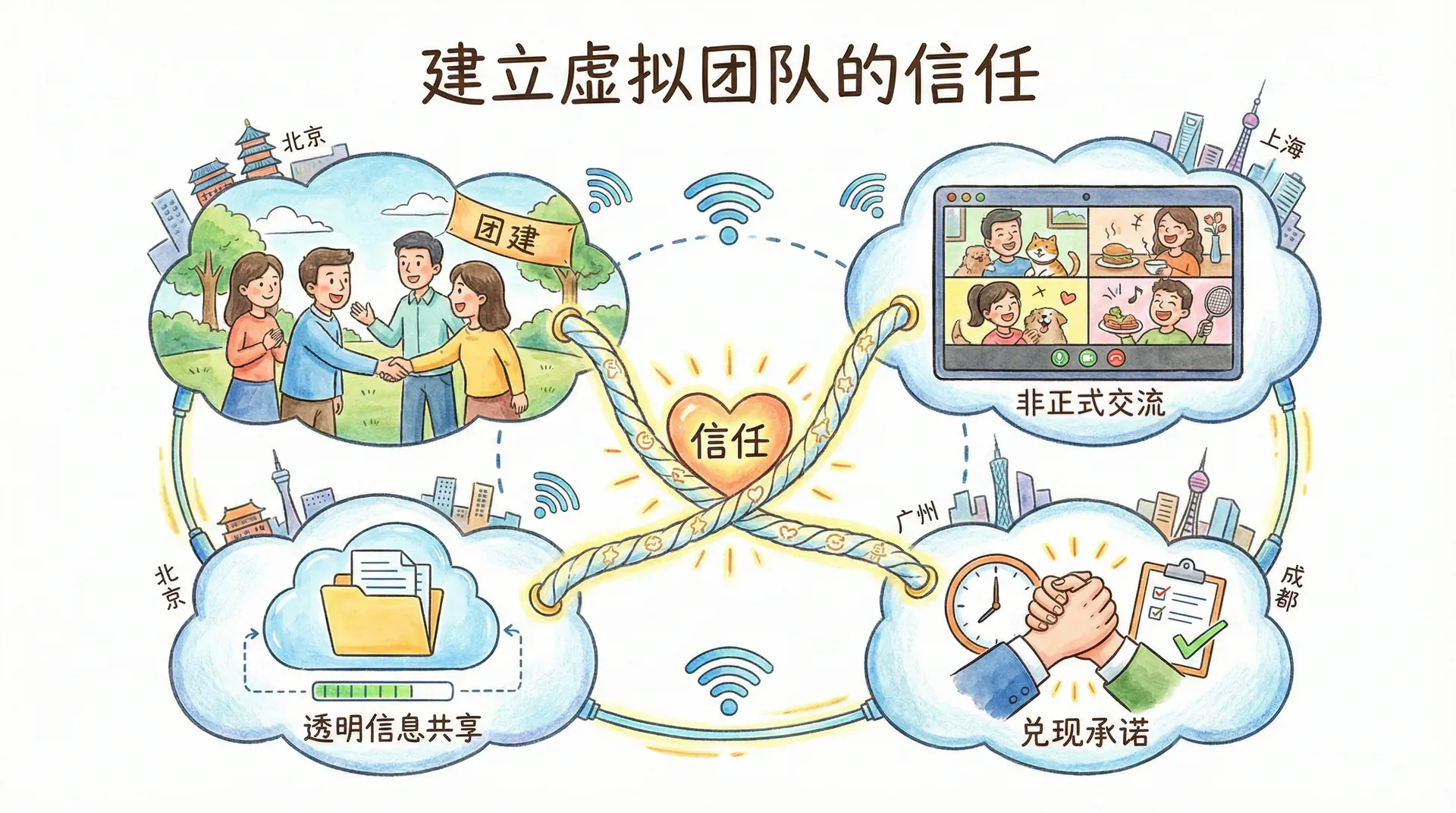信任在虚拟团队中更难建立却更加重要。传统团队可以通过日常相处逐渐建立信任,虚拟团队缺少这种自然的信任积累过程。