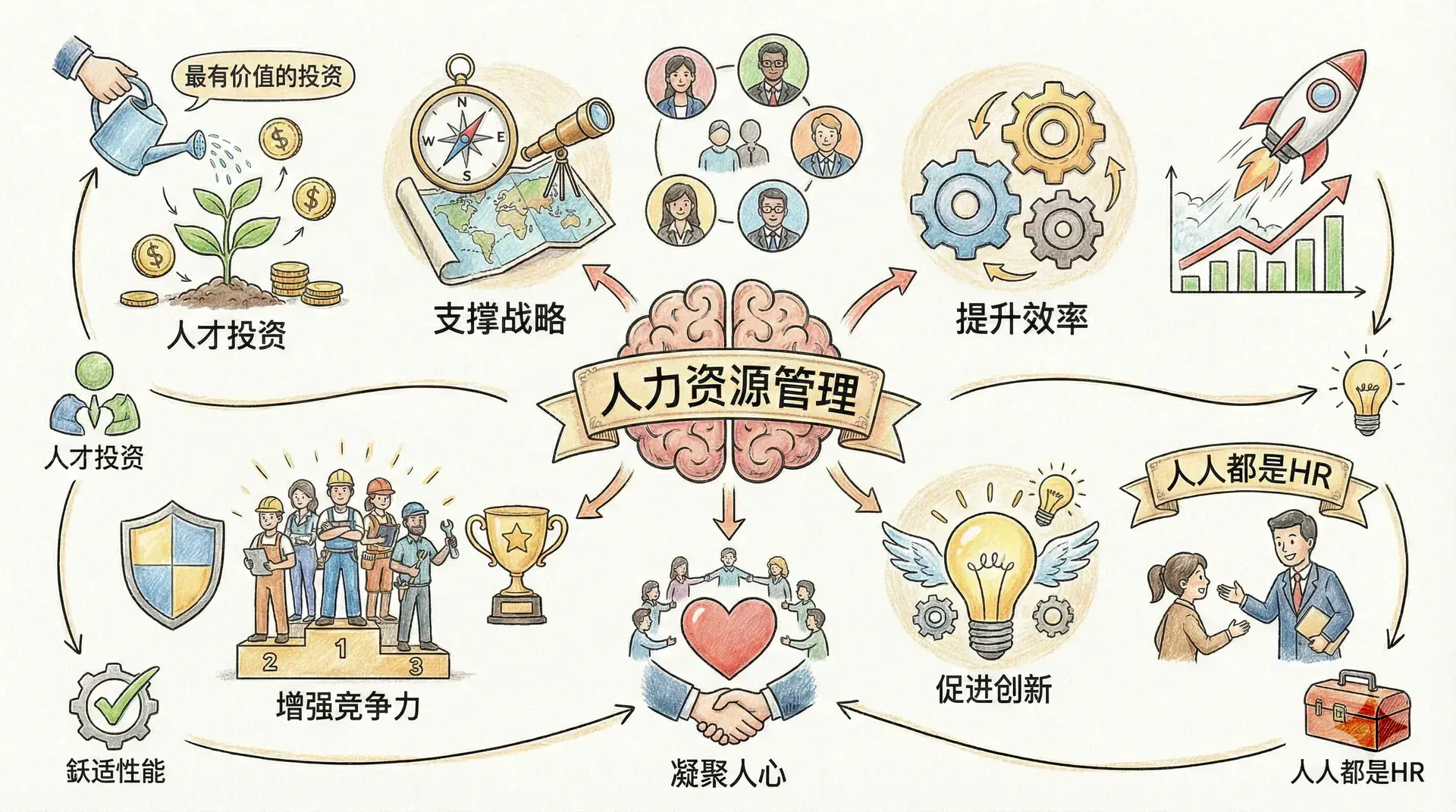 总结而言,系统、科学的人力资源管理不仅支撑企业战略实施,更是提升组织效率、增强创新与团队凝聚力、实现企业与员工共同成长的重要保障。