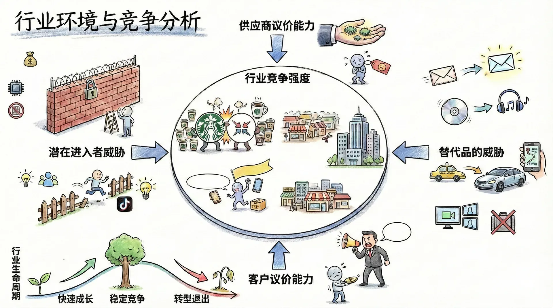企业在分析外部宏观环境(如PESTEL六大因素)的基础上,还必须系统地关注自身所处行业的具体竞争状况。行业环境直接决定了企业的盈利能力、发展空间和战略选择,其核心在于理解以下几个方面的相互作用。