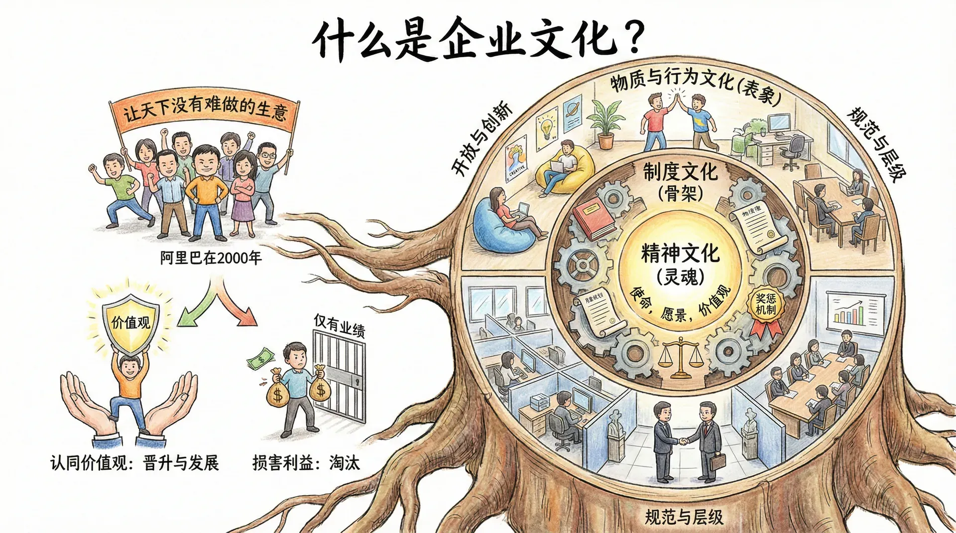 小结:企业文化不是简单的口号,而是通过物质、制度和精神三个层层递进的结构,支撑和塑造着企业发展的方向和独特性。真正强大的企业文化贯穿决策、管理和行为细节,成为企业持续成长与竞争的内在驱动力。