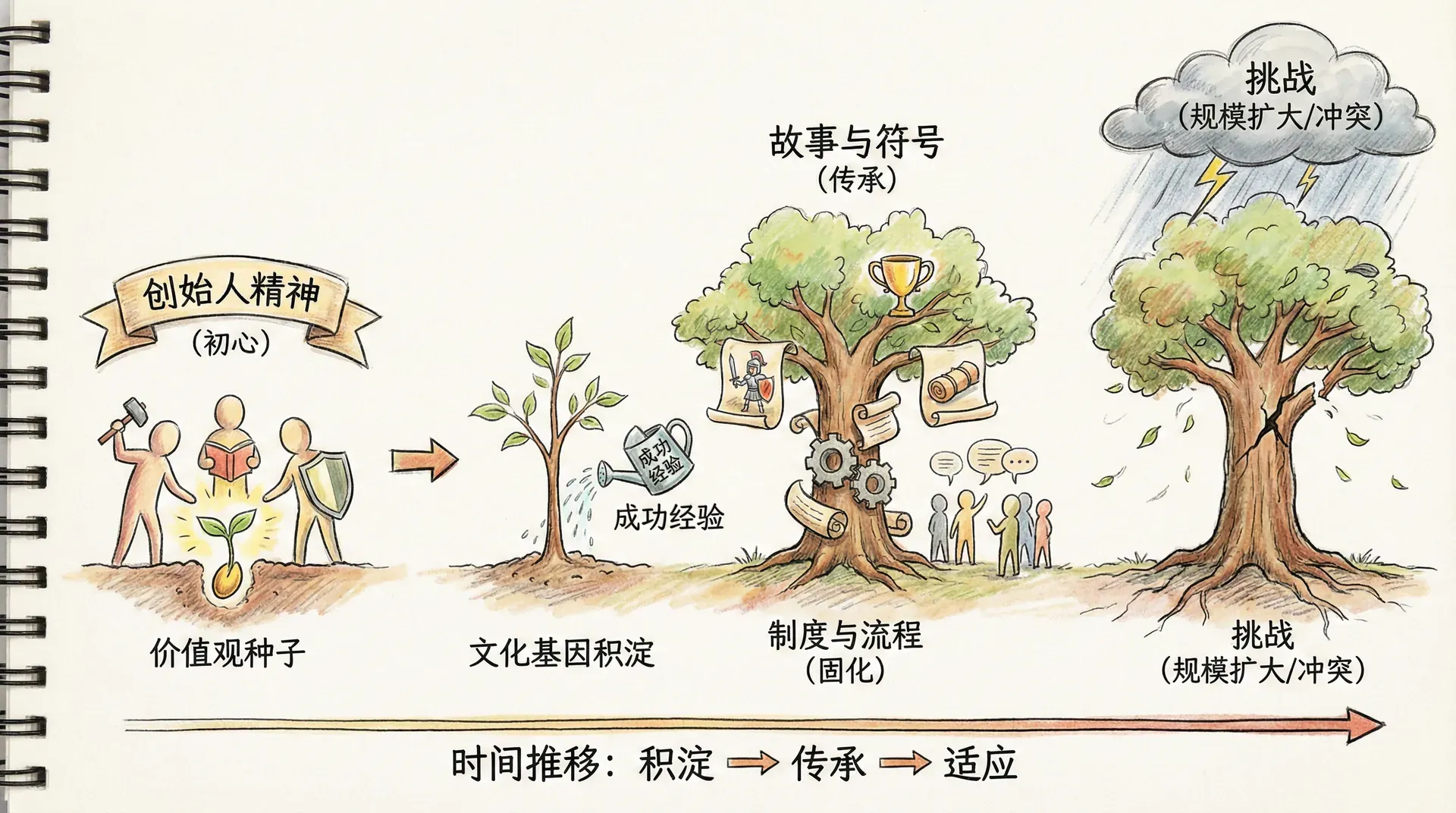 企业文化的形成是一个长期积淀、持续演化的过程,并非一蹴而就。其塑造和传承,通常经历了以下几个关键阶段和机制: