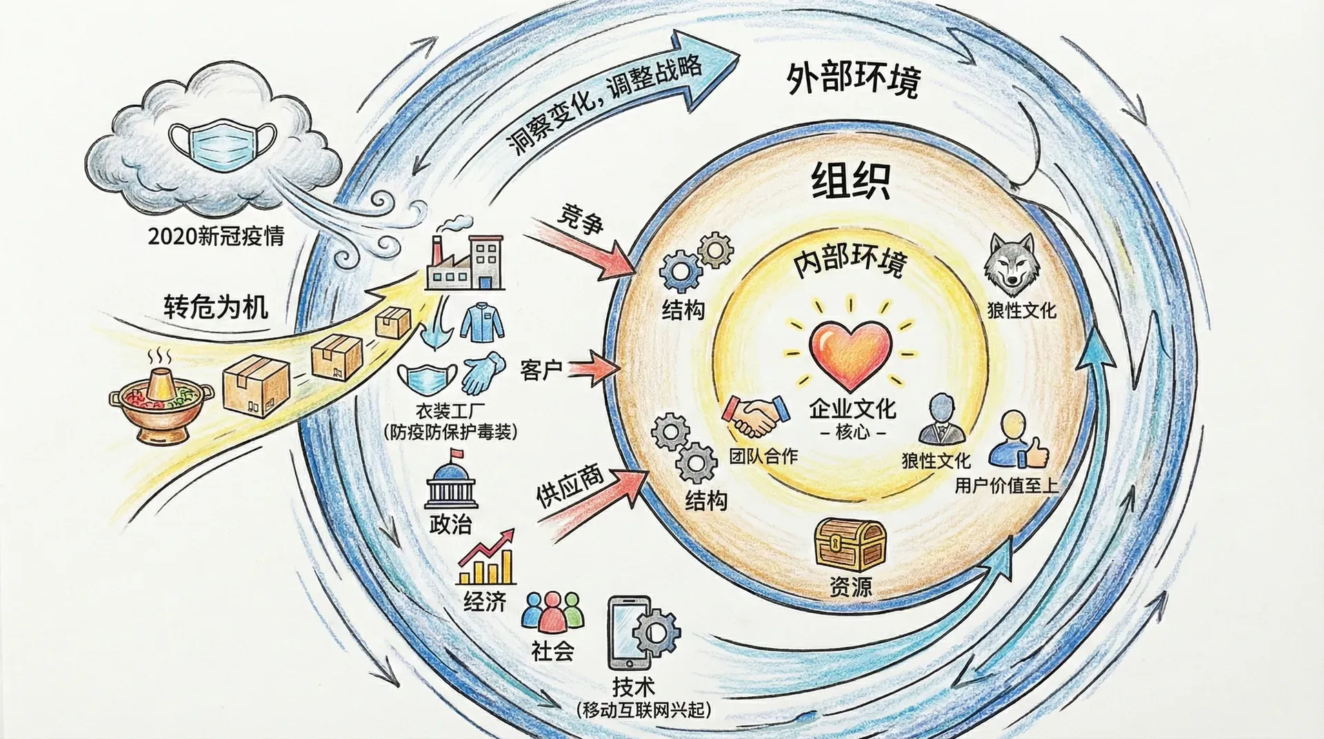 2020年初,新冠疫情突然爆发,几乎所有企业都面临前所未有的挑战。餐饮业门可罗雀,旅游业陷入停滞,制造业供应链中断。但也有一些企业迅速调整策略,转危为机。某火锅连锁品牌发现堂食业务受阻后,立即推出外卖和半成品食材配送服务,不仅保住了业务,还开拓了新的市场。某服装生产企业看到口罩需求暴增,迅速转产口罩和防护服,帮助社会抗疫的同时也实现了自身发展。这些例子说明,企业不是孤立存在的,而是处在复杂多变的环境之中,环境的变化深刻影响着企业的生存和发展。