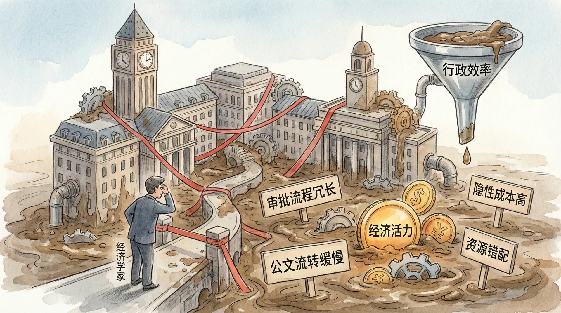 政府部门同样存在严重的污泥问题。虽然政府的目标是服务公众,但各种规章制度、审批流程往往会产生意想不到的摩擦成本。