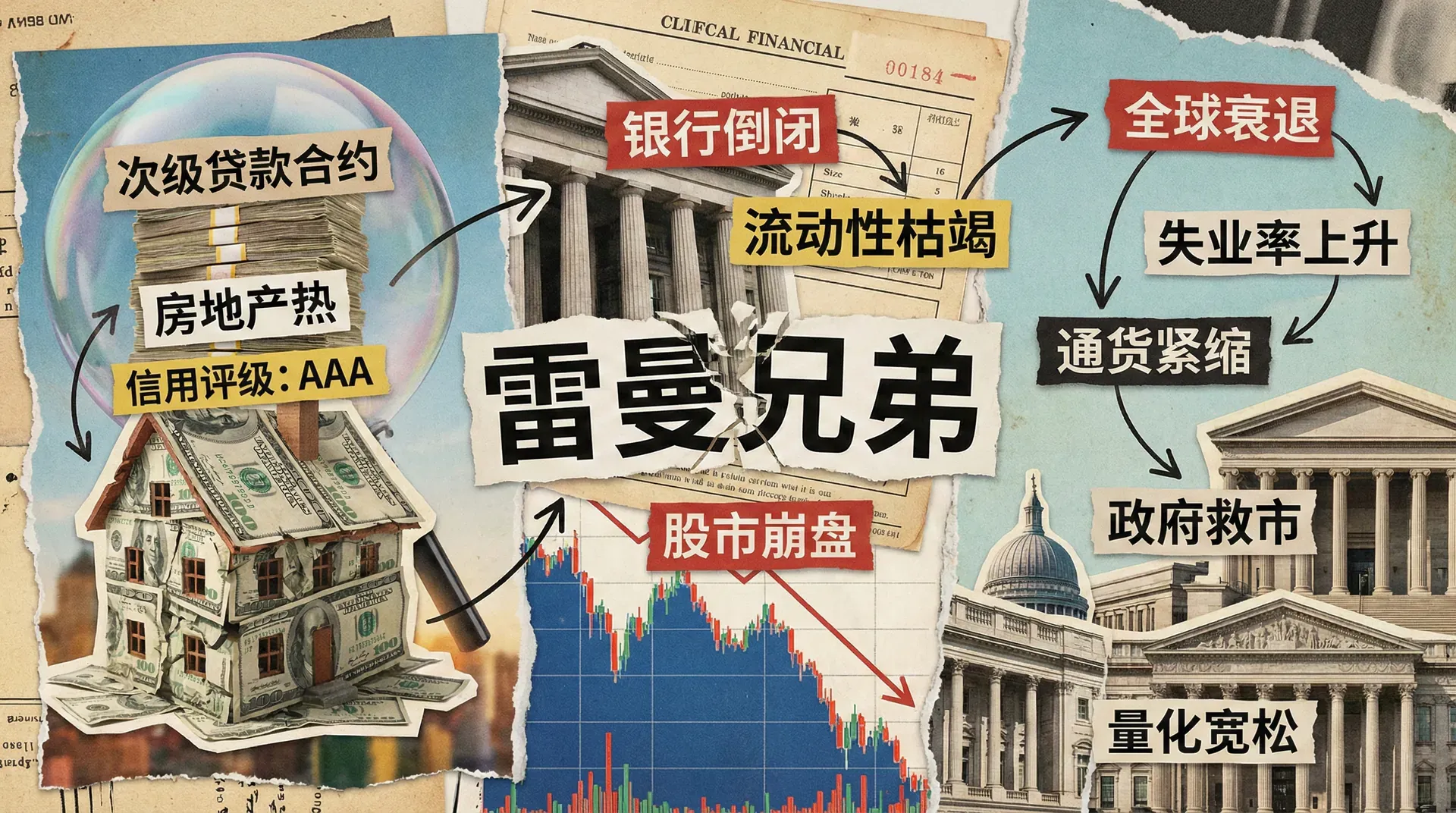 具体来说,美国取消了许多行业经营隔离条例,推动金融创新的同时,忽视了监管的滞后,导致了复杂且高风险的证券化资产(如CDO等)的泛滥。当美国次贷违约率攀升,银行资产迅速变差,雷曼兄弟倒闭成为危机爆发的标志性事件。