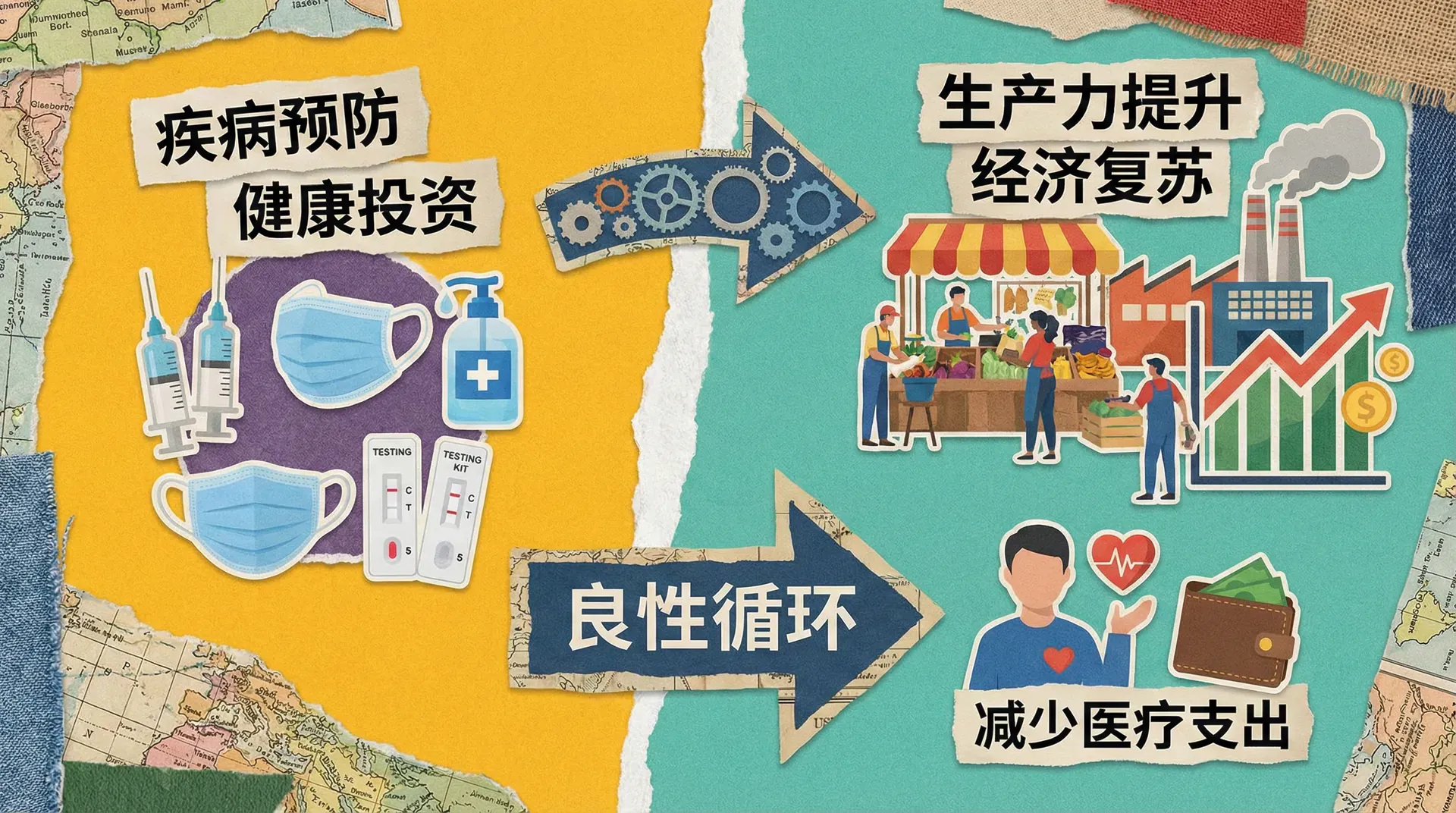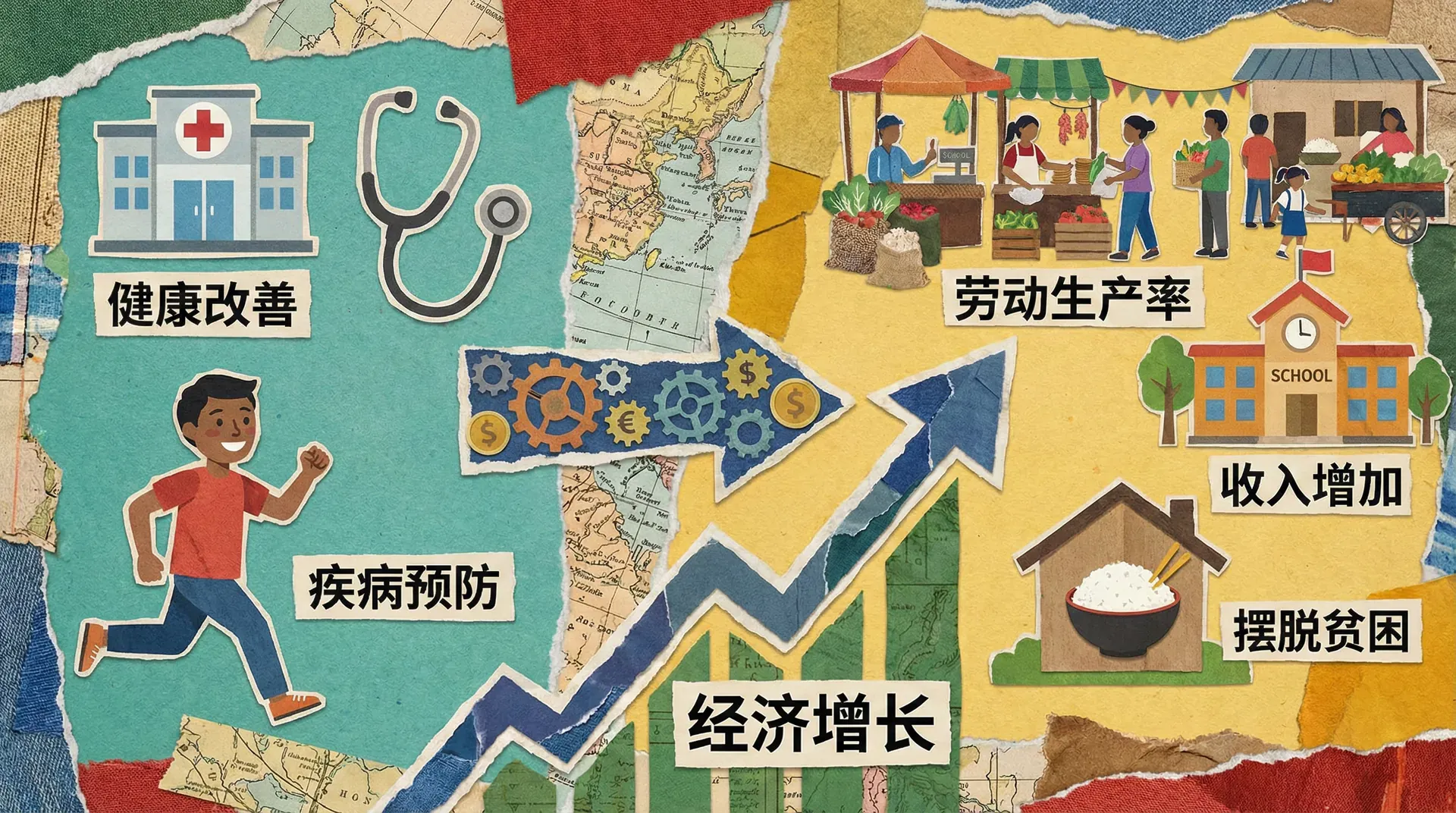 健康和贫困之间存在复杂的双向因果关系:贫困导致营养缺乏、生活条件差、缺乏医疗保障,从而提高疾病风险并降低人力资本积累;而疾病和伤残则降低劳动力和收入能力,增加医疗支出,使家庭更易陷入和加剧贫困。正因为如此,打破健康-贫困的恶性循环,是发展中国家实现可持续发展的关键环节。