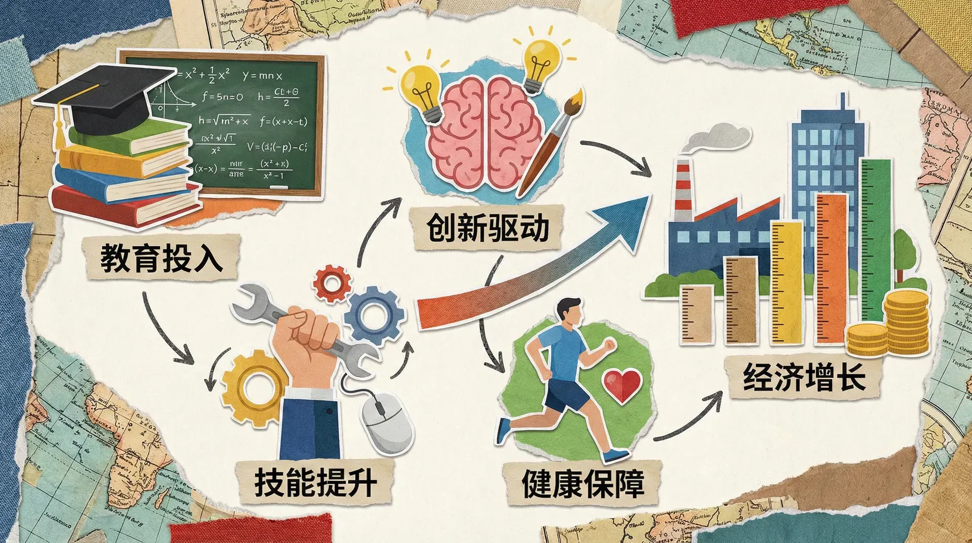 教育和健康是人力资本的双环驱动。大量实证研究和国际经验表明,教育与健康的良性互动显著提升人口素质并促进社会可持续发展: