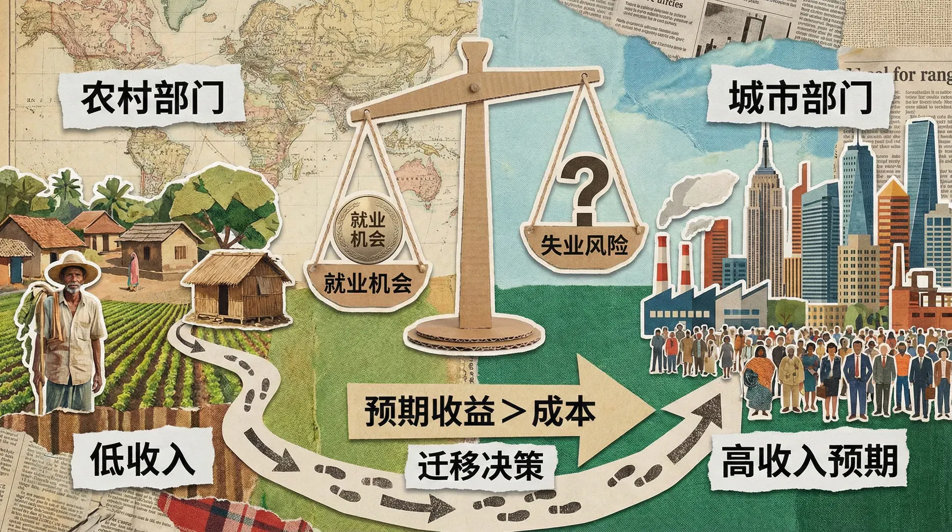 该模型提出,农民的迁移决策并非单纯比较现时工资水平,而是基于城乡“期望收入”差异决定是否流动。