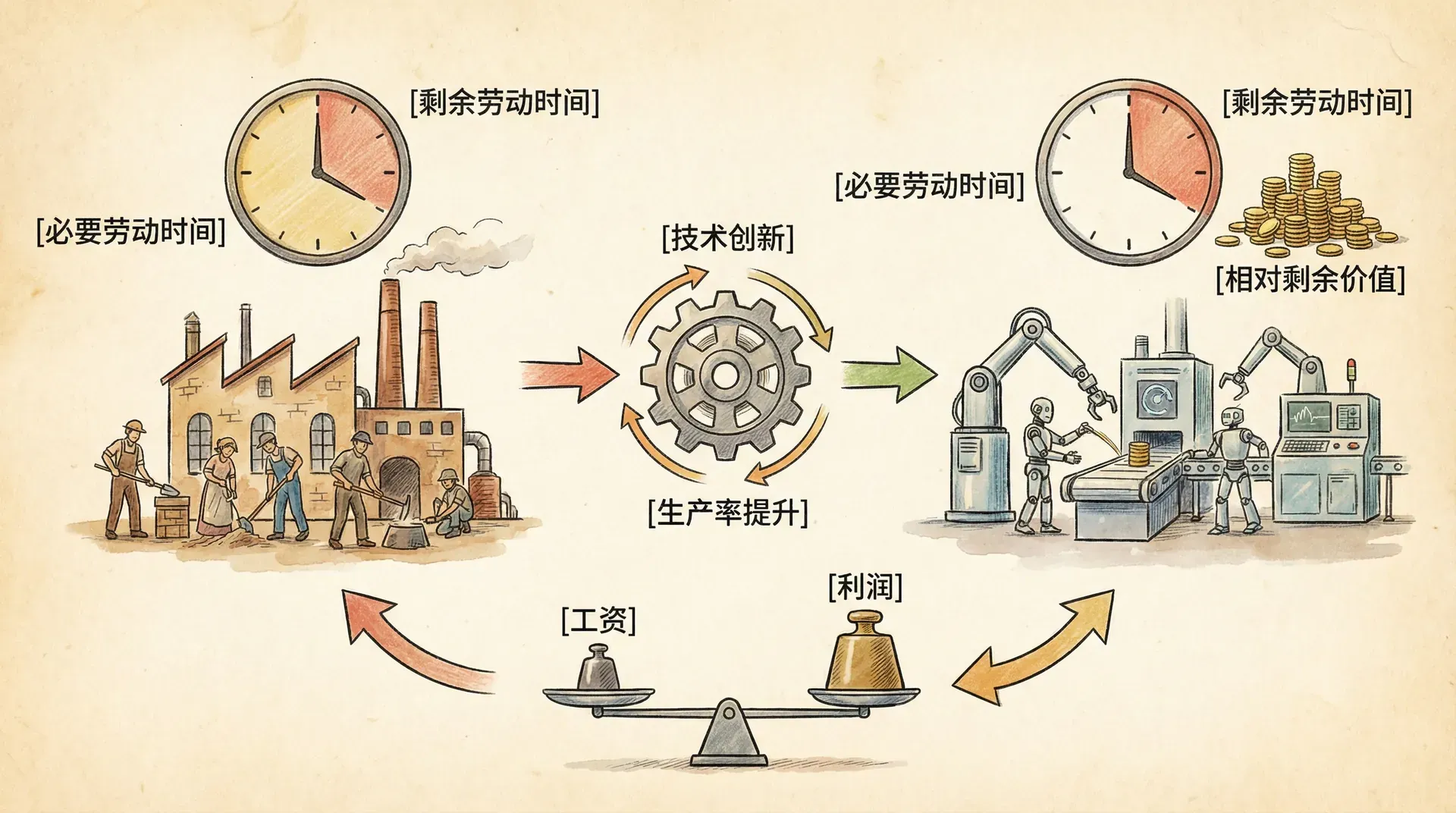 通过对绝对剩余价值与相对剩余价值的深入分析,我们能够更加全面地把握现代经济发展的内在逻辑,理解企业行为的根本动机和劳动关系的深层变化。这一理论不仅深刻揭示了资本主义生产关系的本质特征,还为我们解读工资变化、生产率提升、技术创新以及产业结构调整等当代经济现象提供了科学的分析工具,有助于辨析经济运行中的各种新趋势和新挑战。