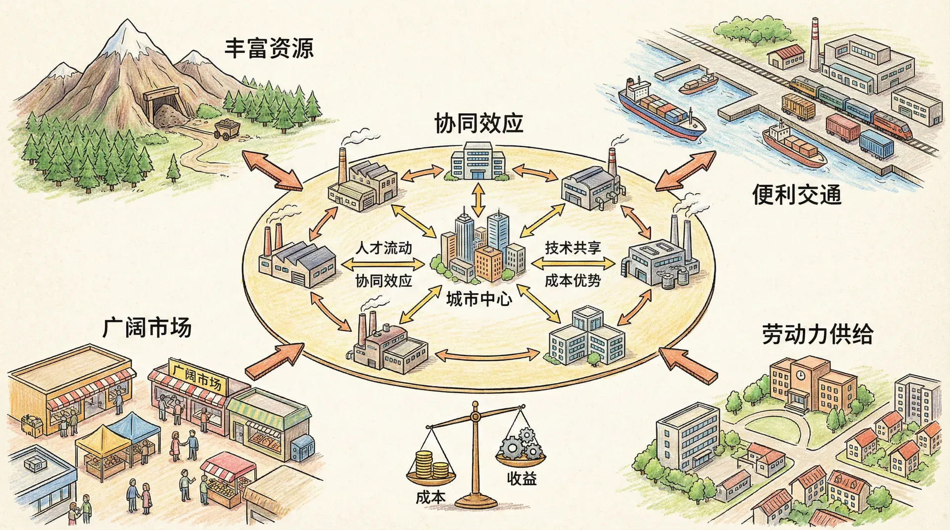 产业聚集与区位选择理论为我们理解现代经济的空间组织提供了重要的理论工具。从企业层面的规模经济到城市层面的聚集效应,这些理论揭示了经济活动空间分布的内在逻辑。