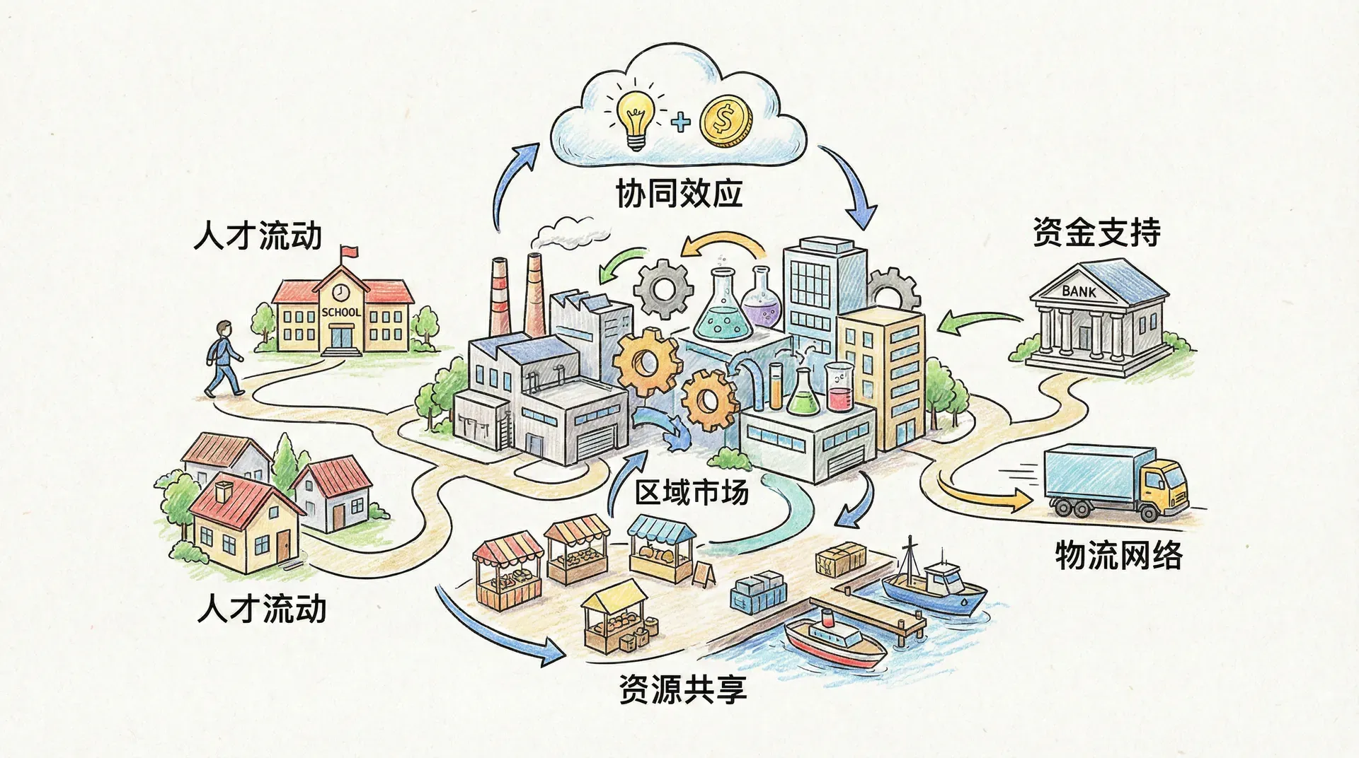 产业聚集往往经历“先到者优势”到“路径依赖”,再到“自我强化和质变”的转变。先行企业因前期集聚获得了市场和人才优势,后续企业因为协同合作和降低转移成本也更愿意留在原地,进一步增强了聚集区的吸引力。这一历史动态很大程度上解释了为何某地产业集群能够持续发展。