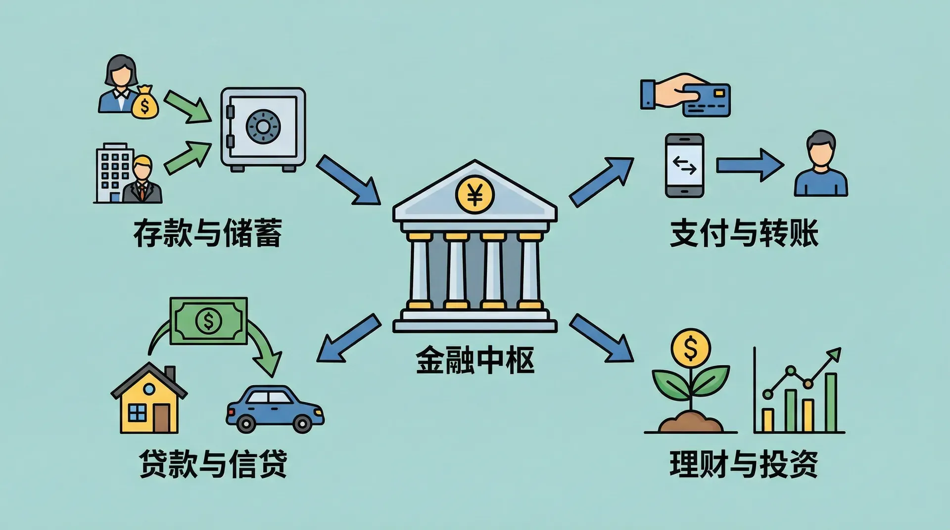 银行业务是现代金融体系的核心组成部分,承担着连接储蓄者与借款者、优化资源配置的重要职能。作为经济运行的重要中介机构,银行通过吸收存款、发放贷款、结算支付、货币发行等多种业务活动,促进了社会资金的流动和产业的发展。银行不仅在支持实体经济、推动技术创新、促进就业等方面发挥着基础作用,还对国家的货币政策、金融稳定和经济增长产生着深远影响。