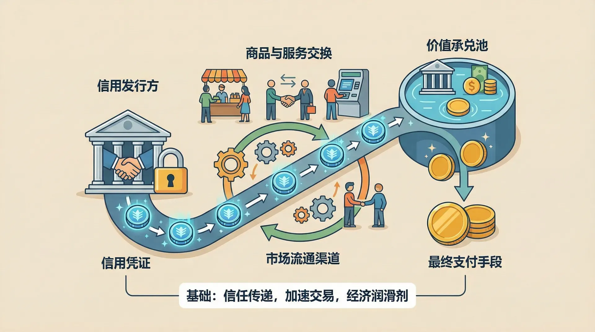 信用媒介的使用并没有改变交换行为的本质,交换仍然需要通过货币作为中介,信用媒介只是改变了货币的表现形式。