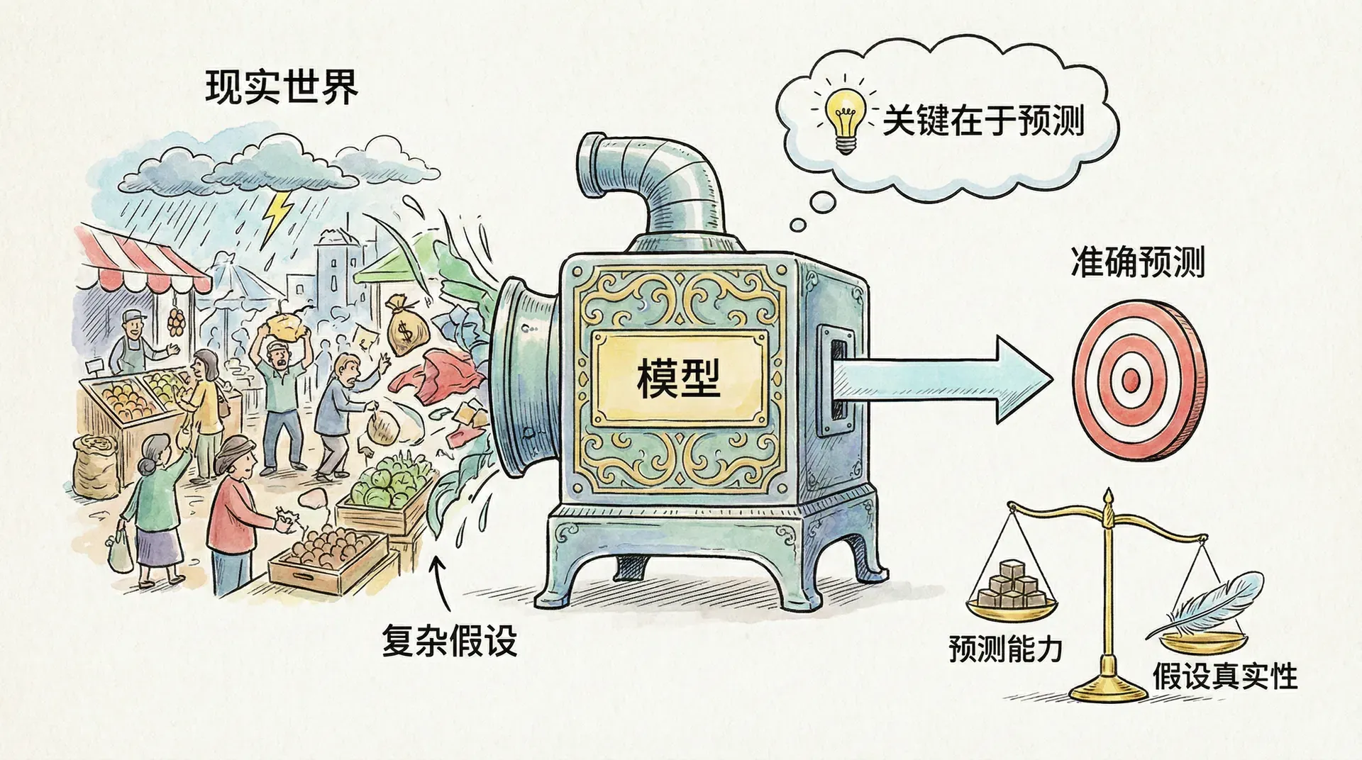 弗里德曼的假设无关性论题主张,经济理论的有效性不取决于假设本身是否贴近现实,而在于理论能否做出准确预测。在中国,这一理论被灵活借鉴,用于说明模型的服务对象是决策与实践,而非绝对真实。